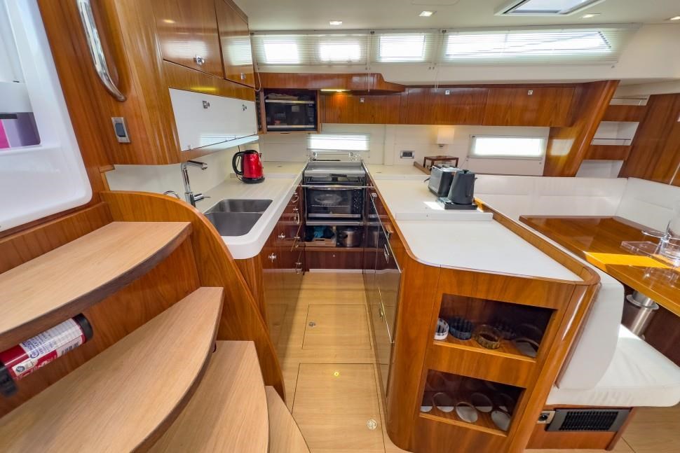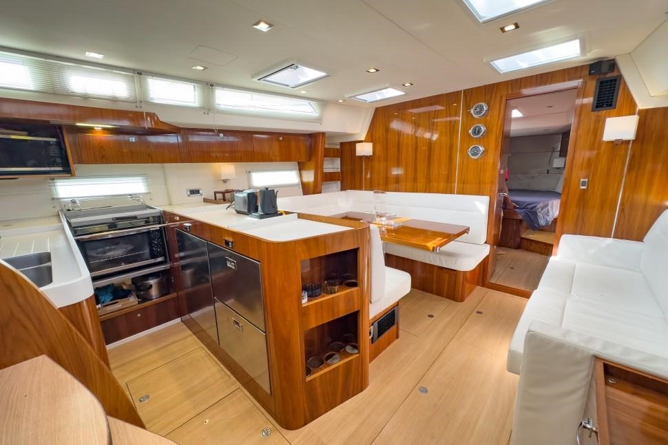 Discover the AMEL 55 "SANTO," a 2014 luxury bluewater cruising sailboat now available in French Polynesia. Designed by Berret-Racoupeau and built to Amel's renowned offshore standards, this impeccably maintained vessel offers unparalleled reliability, autonomy, and comfort for serious sailors. Featuring a rare 2-cabin, 3-head layout with exquisite American walnut joinery and new leather upholstery, "SANTO" ensures spacious and elegant living aboard. Equipped with advanced energy systems including Victron lithium batteries, solar panels, wind generator, and an Onan generator, she provides complete energy independence. Recent upgrades include new sails, rigging, and Sparcraft boom, alongside top-tier electronics such as Furuno chartplotters, dual autopilots, B&G instruments, AIS, and SEA.AI floating object detection. Powered by a reliable Volvo Penta D3-110hp engine with low hours, plus a Bruntons Autoprop and Sleipner bow thruster, this vessel is ready for global cruising. Additional features include a Highfield 340 RIB with Honda 20hp, Simpson davits, Miele appliances, and extensive spare parts inventory. Experience exceptional liveaboard comfort with reversible air conditioning and Webasto heating. "SANTO" is the epitome of an elegant, capable, and truly autonomous world cruiser. Contact 36° Brokers Tahiti for a viewing and seize the opportunity to own one of the best-outfitted Amel 55s afloat.