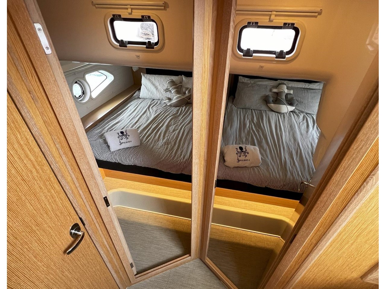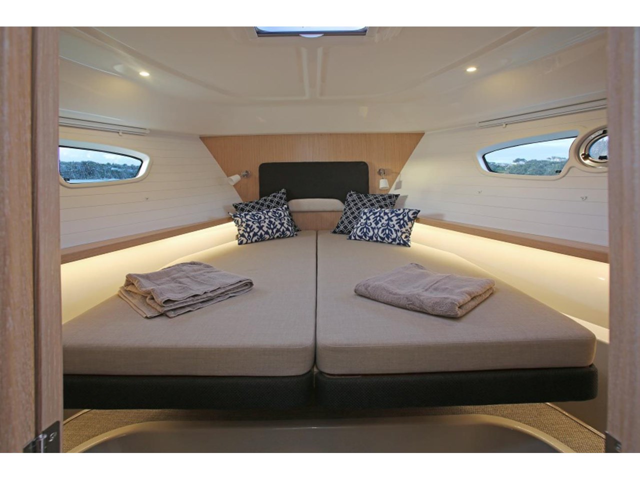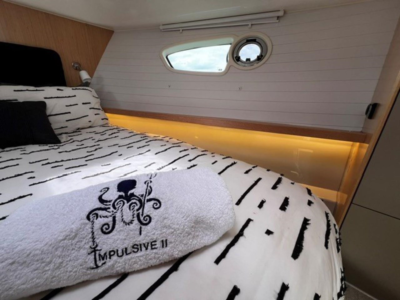 The Bavaria E40 Sedan is a stunning motor launch that combines elegance with functionality. With a length of 13.60 m, this vessel features a spacious three-cabin layout and two bathrooms, making it perfect for family adventures or entertaining guests. Powered by a single mid-mounted 300hp Volvo engine, it offers a comfortable cruising speed of 9 to 10 knots, while also being economical at 8 knots. The unobstructed 360-degree view from the centre helm allows for an immersive experience, whether you're navigating or socialising in the salon and cockpit. This ready-to-go boat is designed for those who appreciate both the journey and the destination.