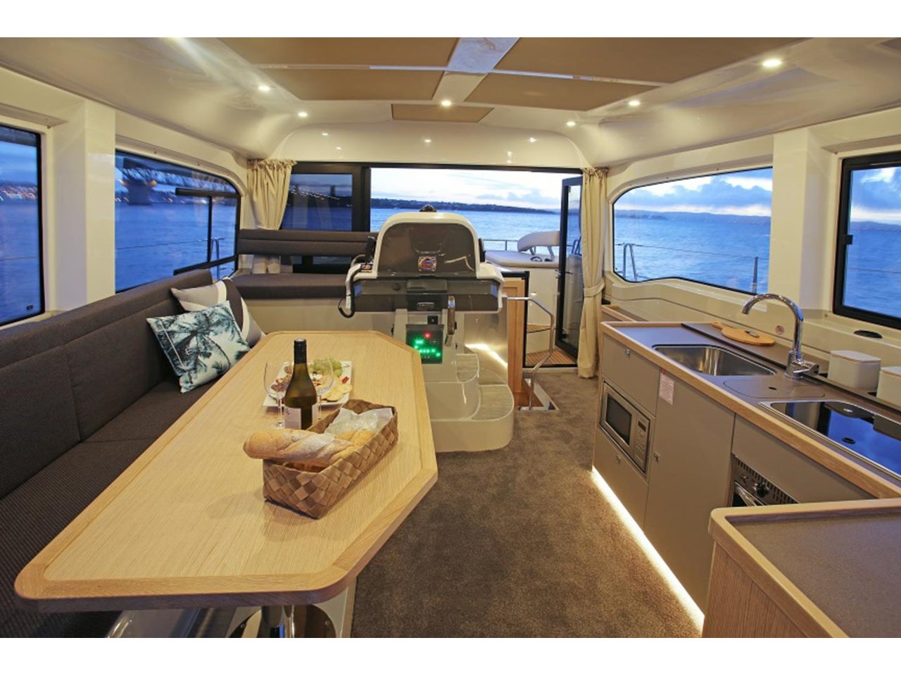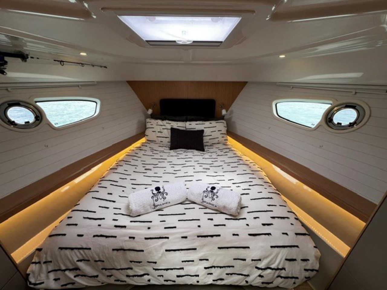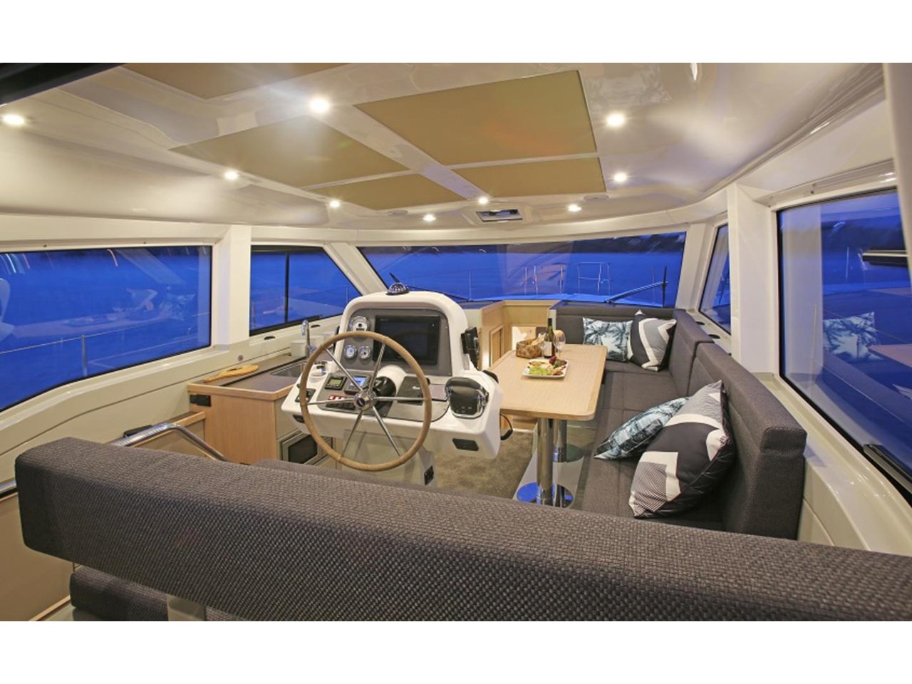 The Bavaria E40 Sedan is a stunning motor launch that combines elegance with functionality. With a length of 13.60 m, this vessel features a spacious three-cabin layout and two bathrooms, making it perfect for family adventures or entertaining guests. Powered by a single mid-mounted 300hp Volvo engine, it offers a comfortable cruising speed of 9 to 10 knots, while also being economical at 8 knots. The unobstructed 360-degree view from the centre helm allows for an immersive experience, whether you're navigating or socialising in the salon and cockpit. This ready-to-go boat is designed for those who appreciate both the journey and the destination.