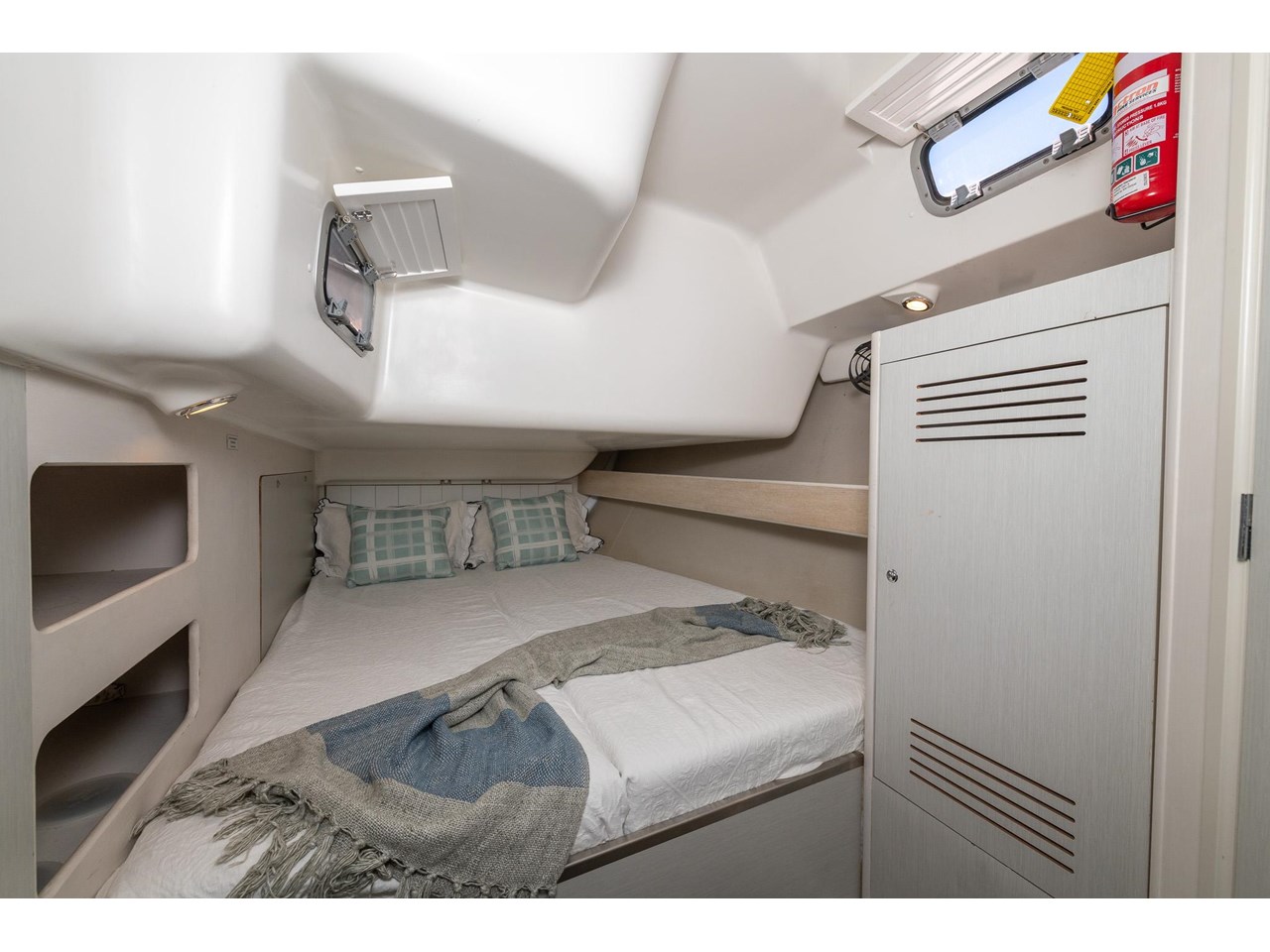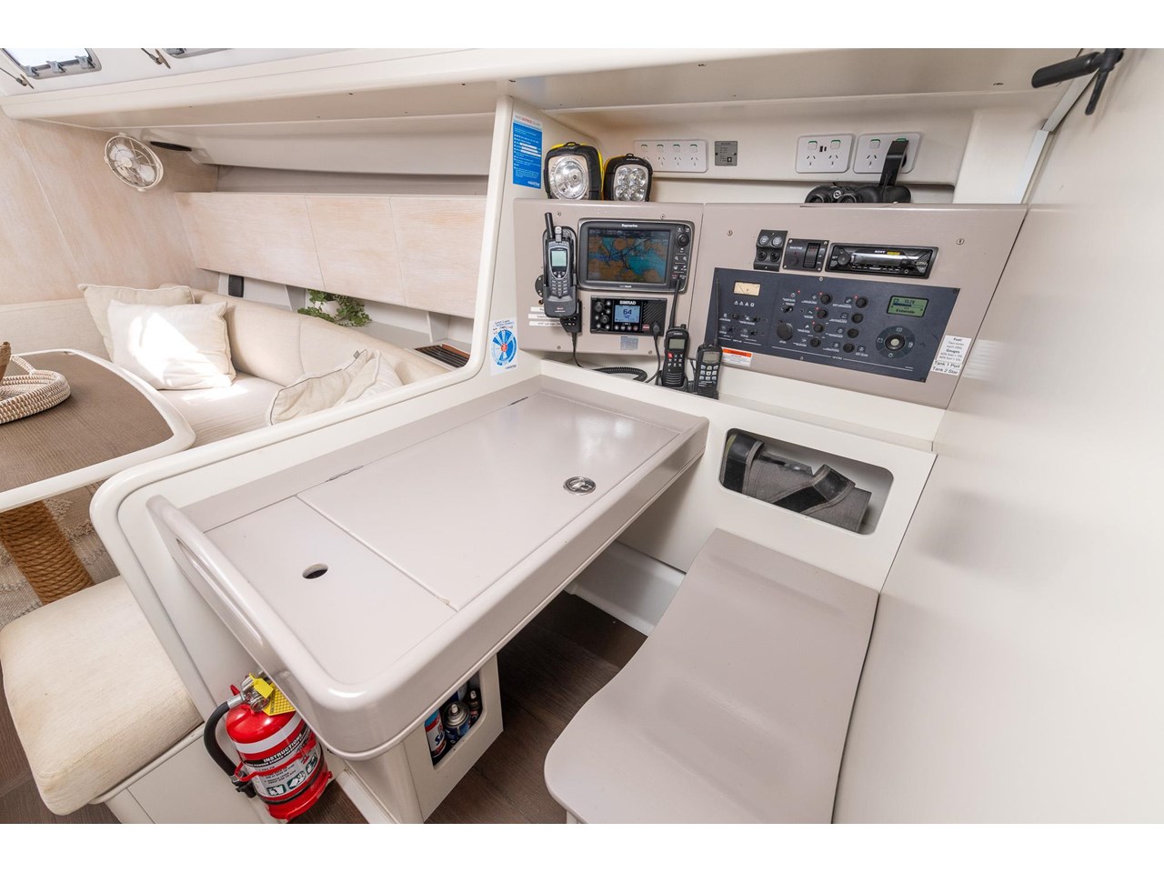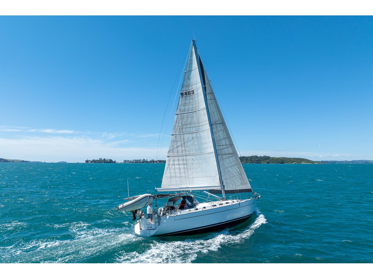 KRISTO is equipped for easy, efficient handling: the Leisure Furling mainsail, furling genoa, and all control lines led back to the cockpit make single- or double-handed sailing straightforward. The bow thruster provides precise manoeuvrability in tight harbours, while her deck layout allows all sail adjustments to be made safely and conveniently from the helm.