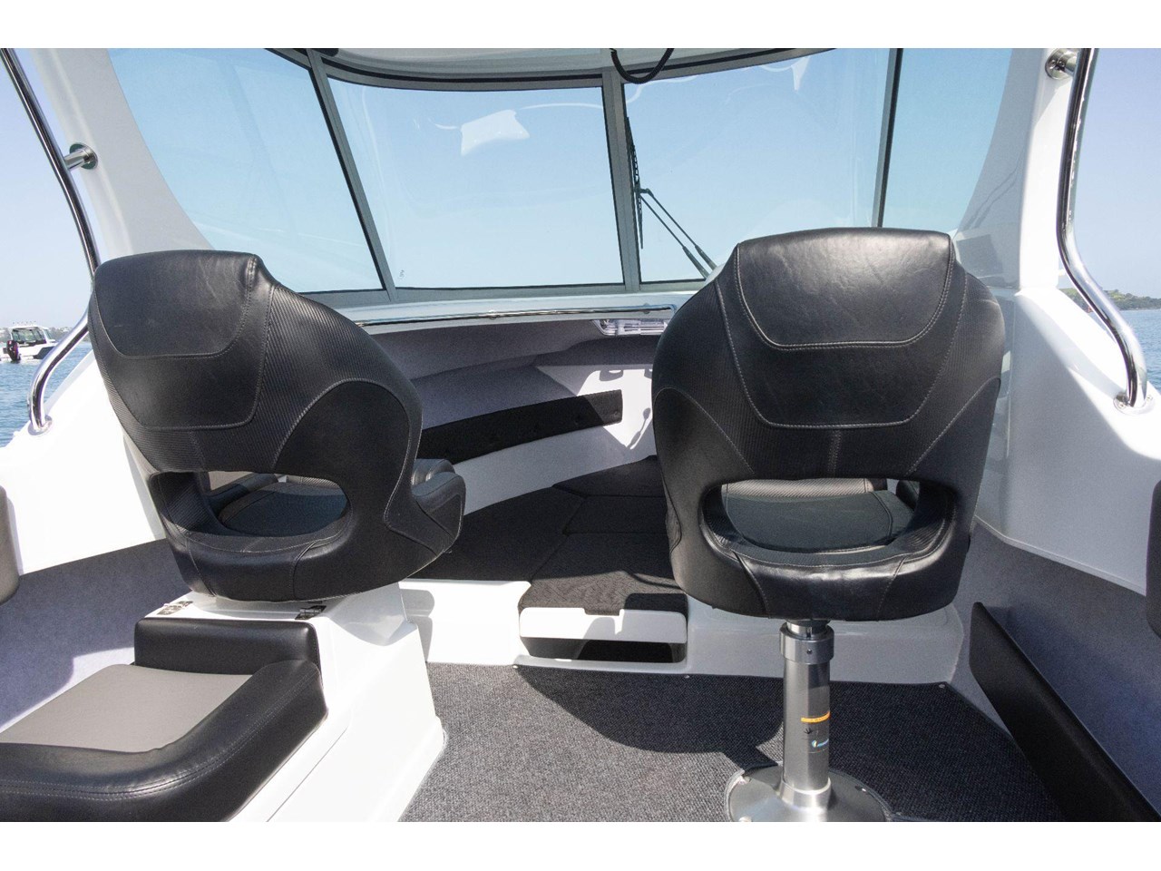 Bow Rails Stainless Steel Full Length H/D .... Hand Rails in Cockpit for Passangers H/D .... Hard Top Mullian Grab Rails .... Wiring Loom Switch Panel for Easy Installation of Electronics and Capstan.... Boarding Ladder- Telescopic.... Fuel Tank -Stainless steel with easy filler from front.... LED Navigation Lights .... Anchor Light.... H/D Fair Lead Drop Down with Bow roller .... Cockpit Rod Racks .... Stainless Steel Rod Holders x 4 .... Drivers Seat Bolster with Soft Rider Pedestal.... Passenger Seat King Queen Bolster and Rear Seat On Fibreglass Base .... Rear Lounge Seats with large storage Bin .... Large Cockpit Side Pockets With toe under feature .... Cockpit Side Panels Upholstered .... Fully Lined Cabin and large Storage Pockets .... Cabin Backrest Upholstered .... Large Anchor Locker Suitable for Drum Winch .... Large Foredeck Cabin Hatch.... Transom Storage Bin .... Wiring Loom Switch Panel for Easy Installation of Electronics and Capstan.... Wiring Loom Switch Panel for Easy Installation of Electronics and Capstan.... Windscreen wiper . Driver..... Bilge Pump.... Tie Down Cleats.... Hydraulic Steering.... LED Cabin Lights.... Underfloor Storage.... Dinghy Tie Downs On Roof.