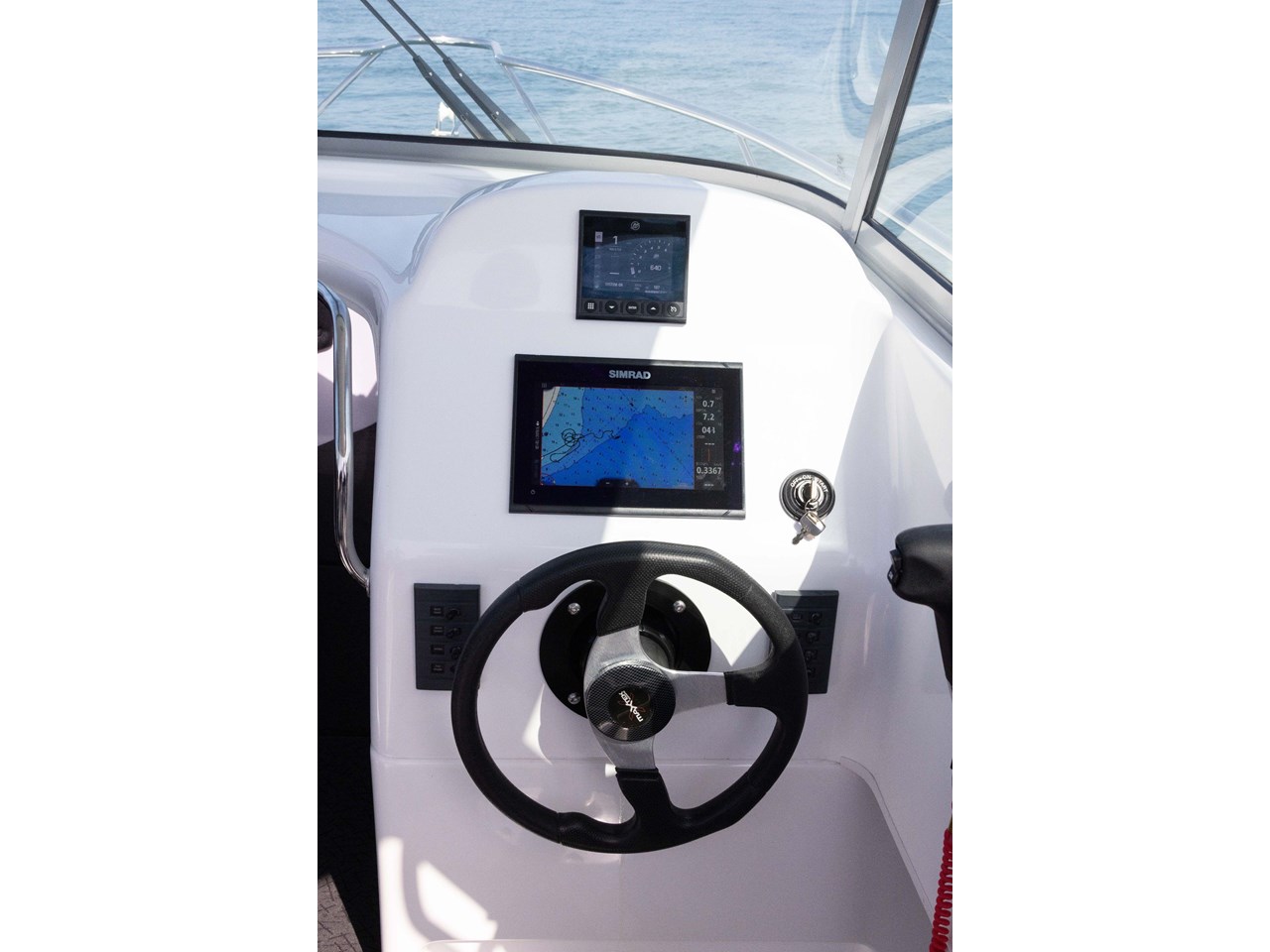 Back Drop Twin Entry Zip.... Vinyl Wrap Hull .... Ski Pole Stainless Steel.... Rocket Launcher Stainless with Hard Top Hand Rails and Radar Brackets .... Toilet Chemical - Altered to fit.... Simrad GO9 with 3n1 Xducer & Charts / Install.... VHF Radio/Aerial/Fitting.