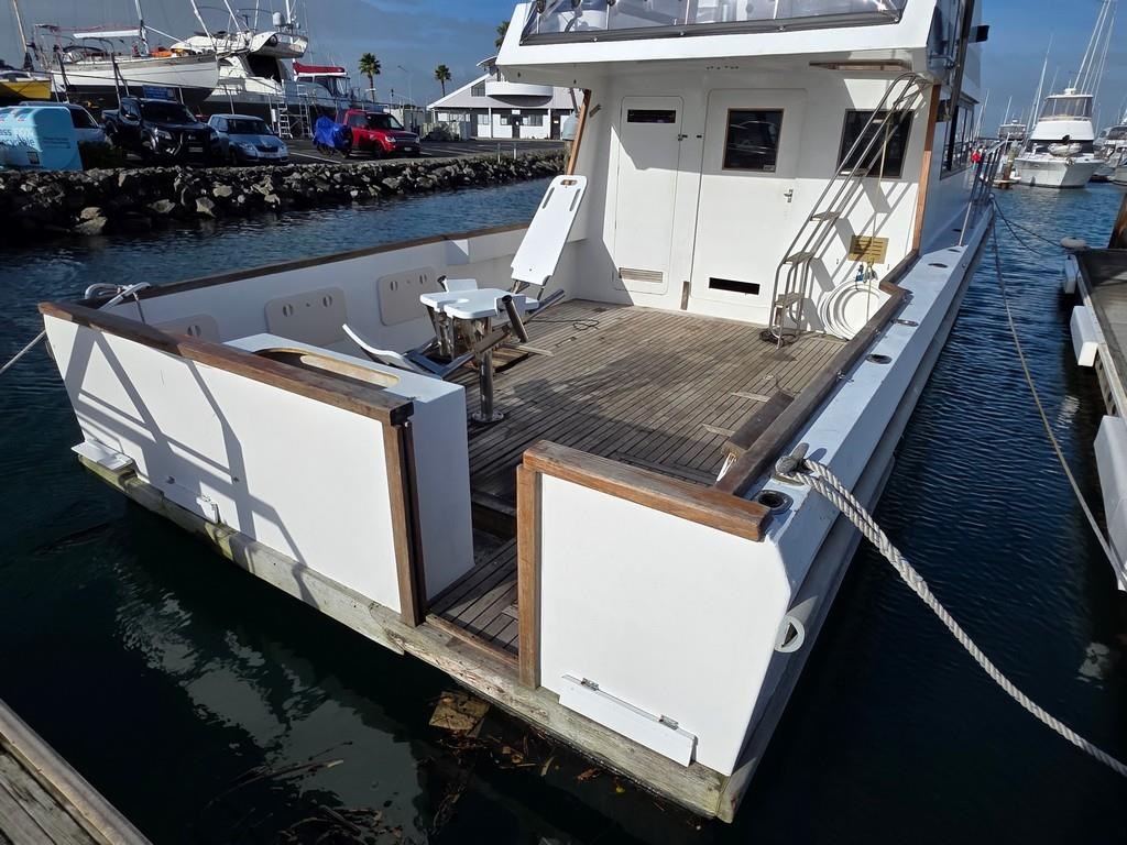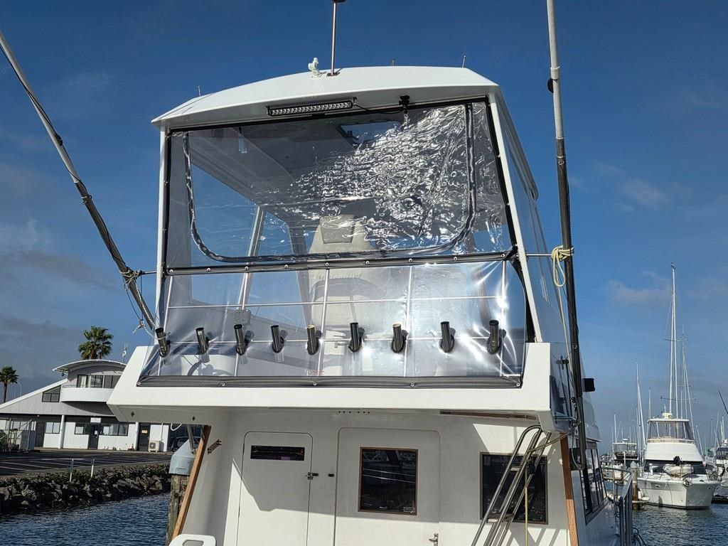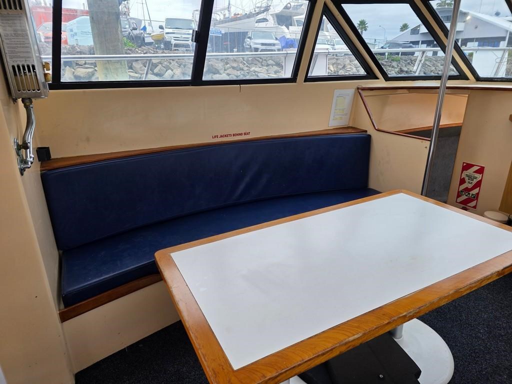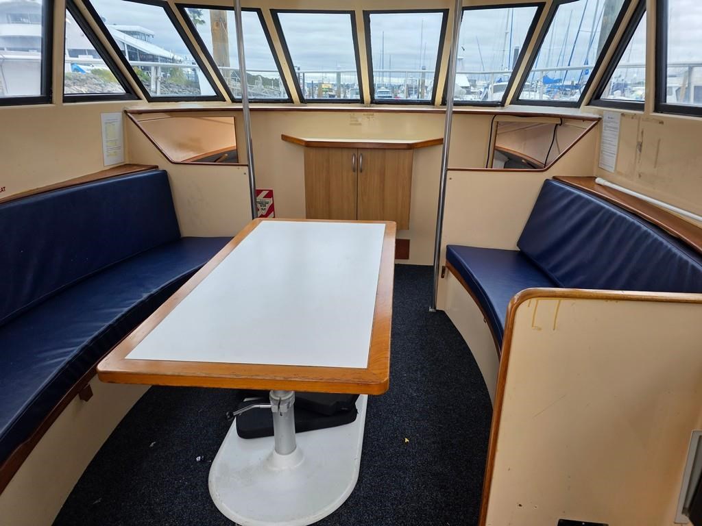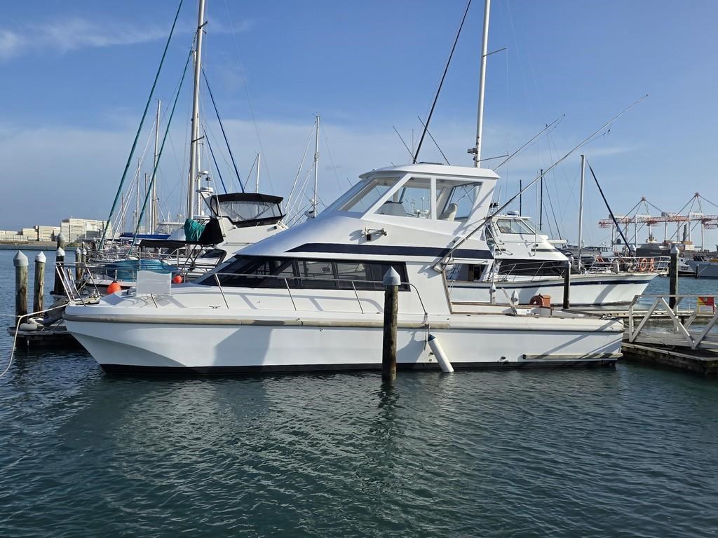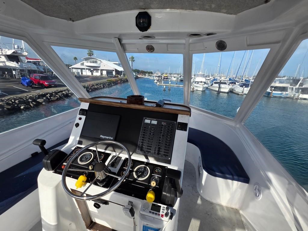 The Cougar Cat 13m (1996) is a robust and versatile power boat built with durable fibreglass/GRP construction. Powered by twin 210hp Hino diesel engines on shafts, it offers a cruising speed of 12-14 knots and a top speed of 18 knots, making it an excellent choice for both fishing and cruising. This 13-meter vessel features a 3.8m beam and a shallow 1m draft, weighing approximately 9 tonnes. Accommodation includes two cabins with single beds, a spacious saloon with a large dinette and couches, and a well-equipped galley with a 2-burner gas hob/oven, fridge, sink, and hot water service. The boat also boasts a lock-up shower and toilet with holding tank, a massive teak cockpit with game chair and bait tank, and a flybridge fitted with new clears, Raymarine touch display, VHF, and anchor winch with new chain and wrap. With twin 800L stainless steel fuel tanks and a history of survey compliance, this Cougar Cat is a fantastic fishing platform and a great value vessel for serious boaters. Contact Tauranga Boat Sales for more information.
