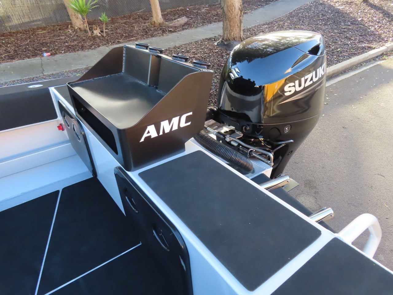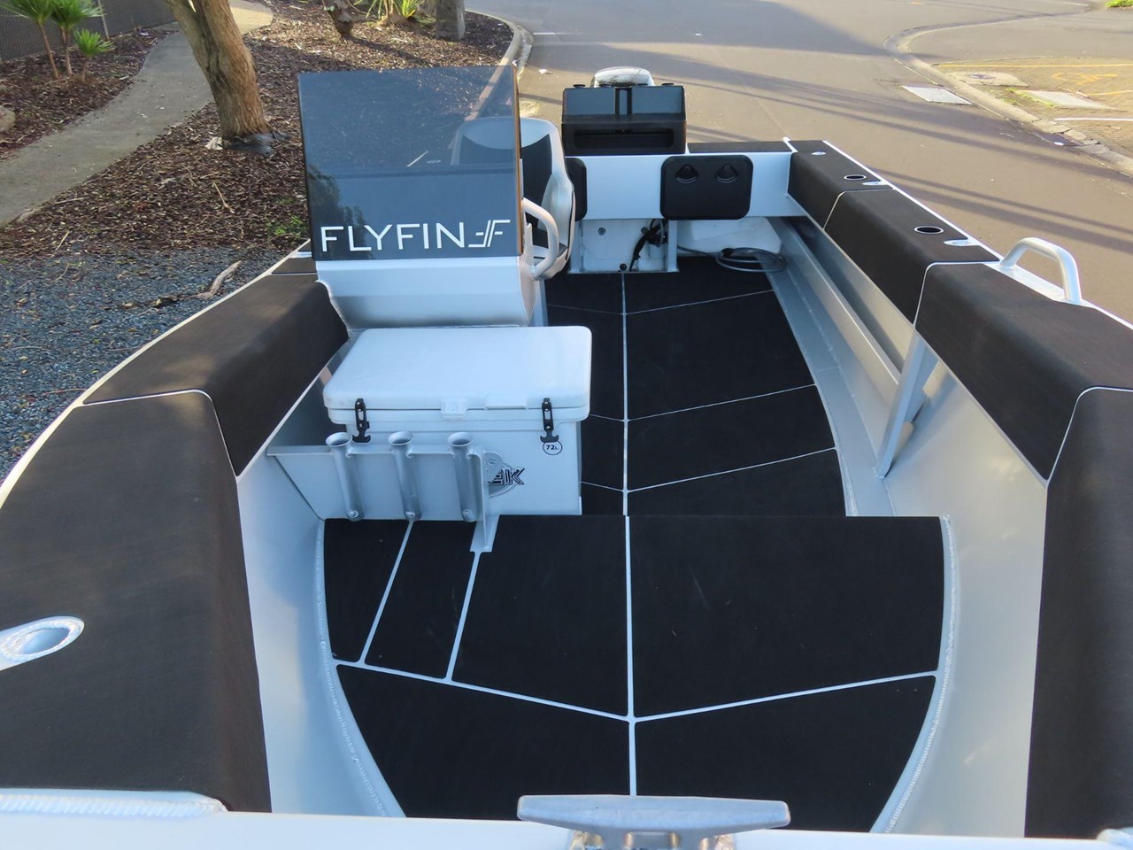 Small Bait Board with 4 Rod Holders - Powder Coated Black.... Grab Rails-Midships (CC & SC).... Chilly Bin Seat....72 Ltr Chilly Bin.... U-Deck Basic Flooring Cockpit.... U-Deck Basic Gunwale / Swim Step.... Painted Hull Sides Solid (A).... Painted Gunwale, Transom & Cabin Top Solid (B).... Nyalic Interior Below Gunnels & Cabin (C).... Upgrade To Suzuki DF75ATL With MFG....Garmin 75CV with Xdcer & Charts / Install.