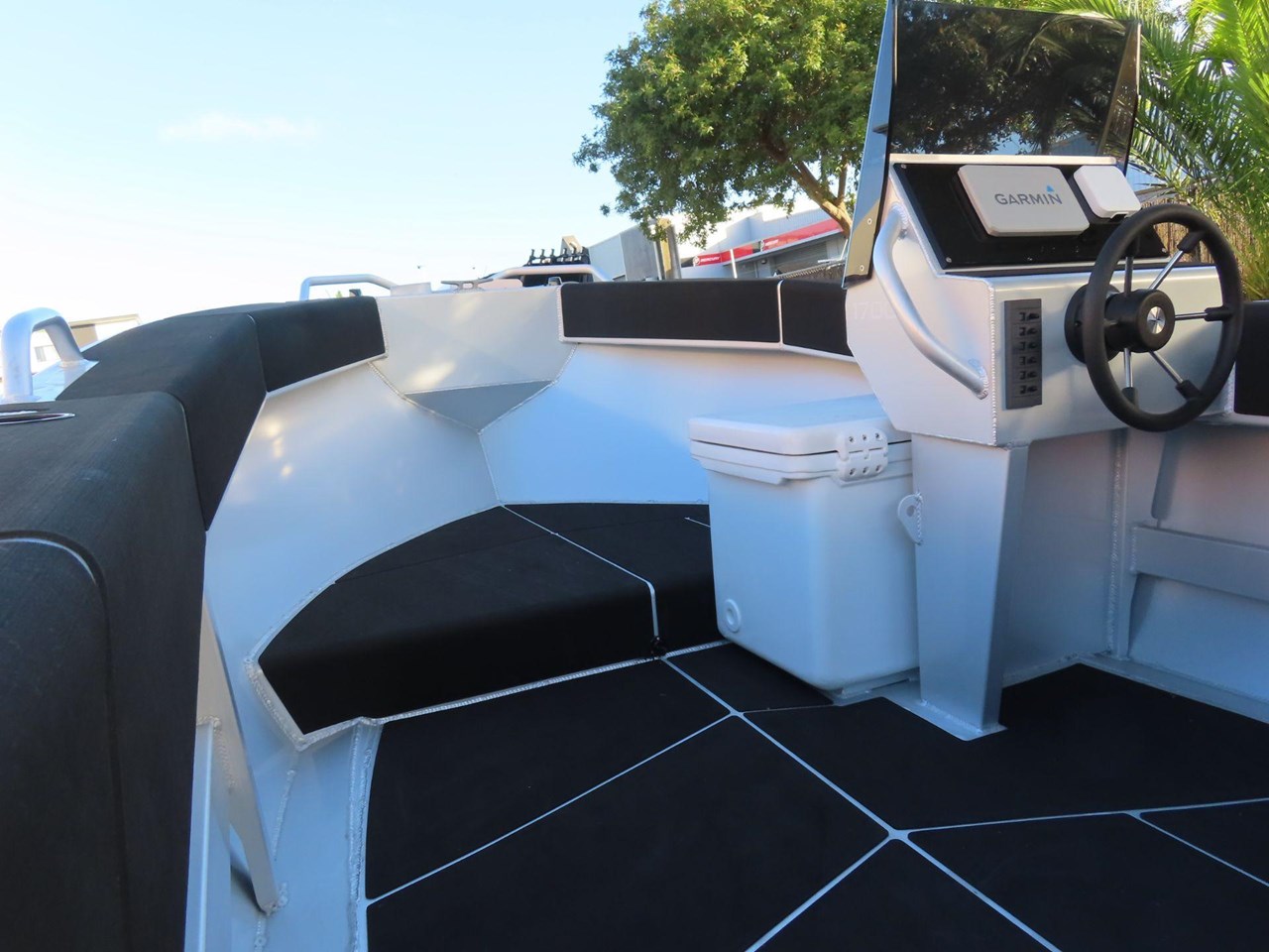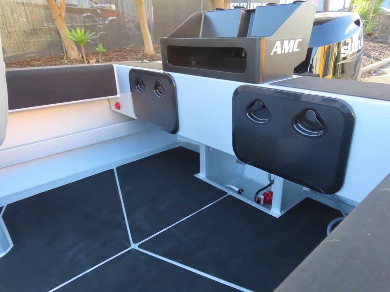 Fully Welded Marine Grade Hull Plates.... Welded Alloy Cleats x 3.... Welded Stern Grab Rails.... Sealed Bouyancy Compartments.... Large Swim Platform.... Full Bouyancy Hull for Large Engine Weight.... Arcylic Screen 10mm Tinted.... Plastic Aft Battery Compartment Hatches.... Bow Grab Rail.... 6 x Fully Welded Rod Holders.... Internal Shelves.... Raised Battery Compartments.... Welded Tread Plate Floor (This is Optional).... Led Navigation Lights.... Built in bow fairlead and roller.... Tote Tank Compatible.... Black Acrylic Dash Panel.... Welded through hull pick up.... 1100 LPH Auto Bilge Pump.... 6-Way Backlit Switch Panel.... Welded Foot Rests.... Easy Drain Cockpit Floor.... Wiring Loom.... Wired for LBT & Washdown.... Fully Welded Alloy Rub Rail.... Bow Hatch (Cuddy Cabin Only).... Cupholders x 6.... Seastar None Feedback Steering .... Transducer Brackets.... U-Dek Pads....