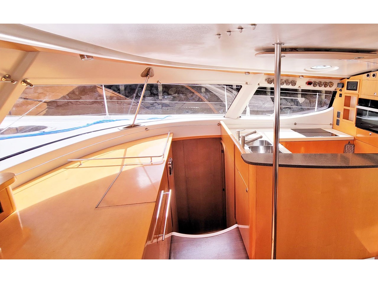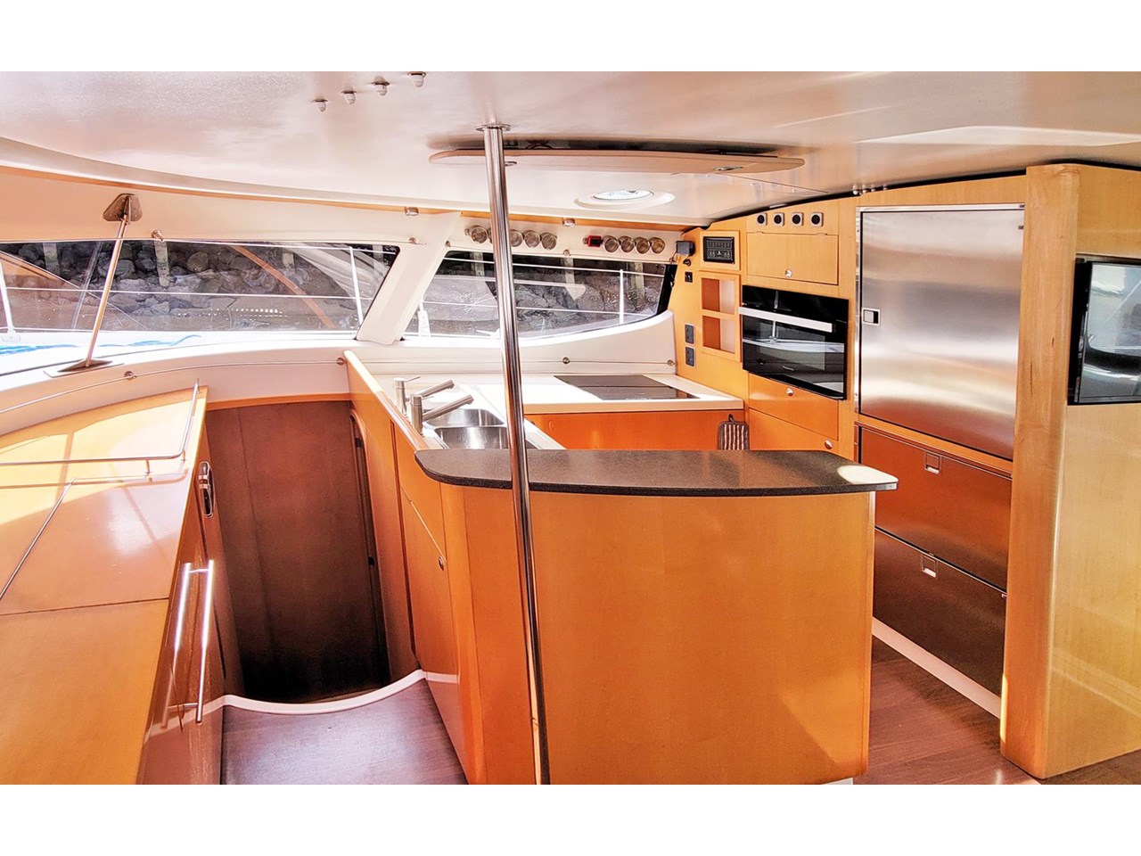 Already renowned as a luxurious, comfortable & spacious design, Moxie has been enhanced by her current owners with upgrades & clever enhancements throughout. The galley has been upgraded to include a full electric hob, convection oven and microwave as well as customized cabinetry for massive refrigeration capacity.