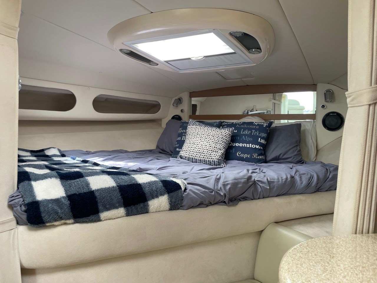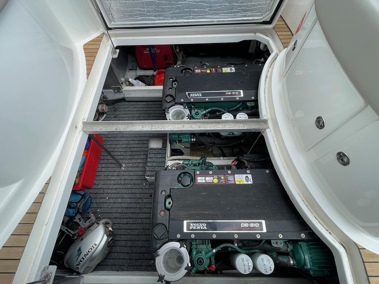 Powered by twin Volvo D6 310HP stern drives, she runs efficiently and handles beautifully, providing a comfortable and economical cruise of 23knts with a max speed of 34knts. Whether youre cruising the coast or heading out for a weekend the addition of solar panels means youve got plenty of power on tap for those longer trips away, so you can stay out on the water comfortably without having to worry.