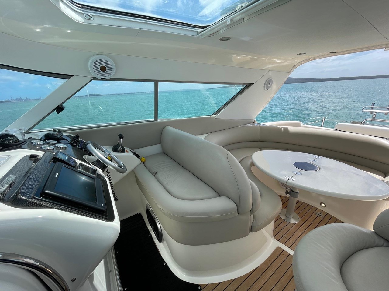The helm is well laid out and equipped and provides great visibility. Featuring a Raymarine 12" Chartplotter, Bow Thruster, Autopilot, Chain Counter, everything is in easy reach of the skipper.