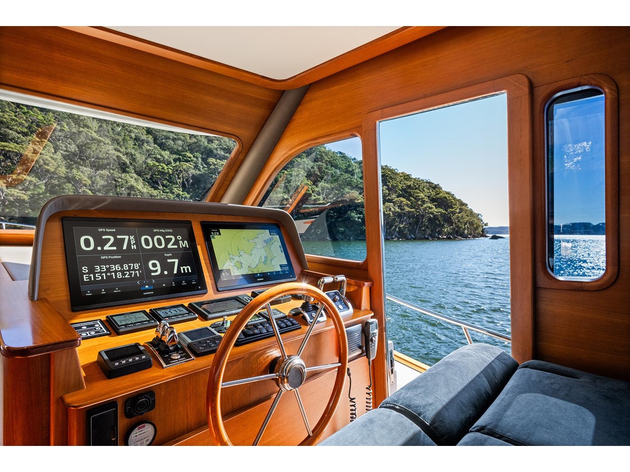 ANUHA II has been exceptionally well-maintained since new by a single owner. It boasts numerous thoughtful upgrades designed for easy operation by a cruising couple, prioritising operational safety and reliability. The Twin Disc EJS system provides joystick control, smooth low-speed manoeuvring, and position hold capability, ensuring effortless handling.