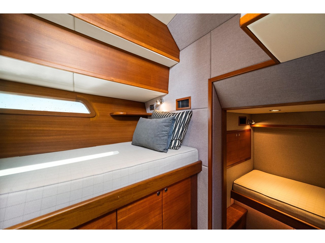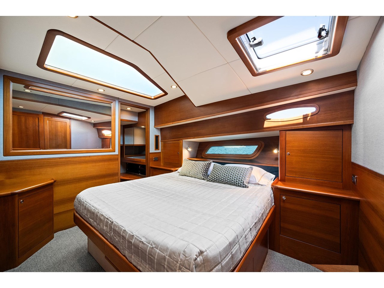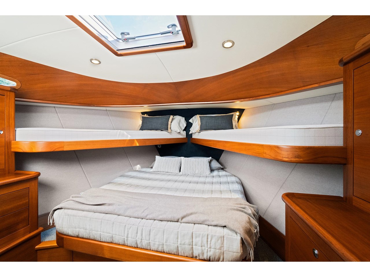 A beautifully appointed midship master suite provides a comfortable retreat, while an en suite and day head complete the accommodation. Host family and friends with ease in the VIP forward cabin with extra bunks, as well as a crew cabin.