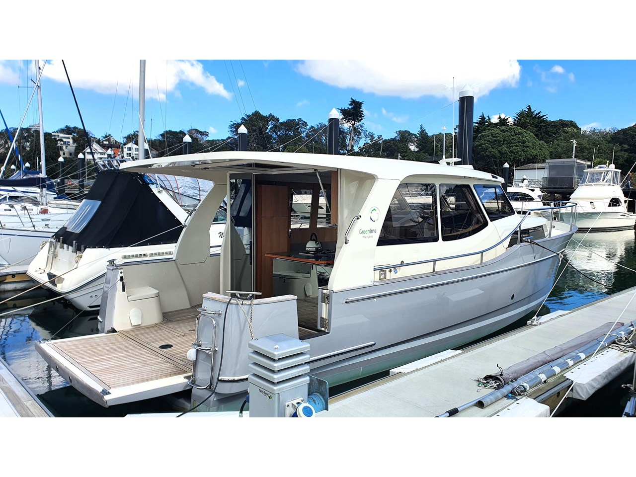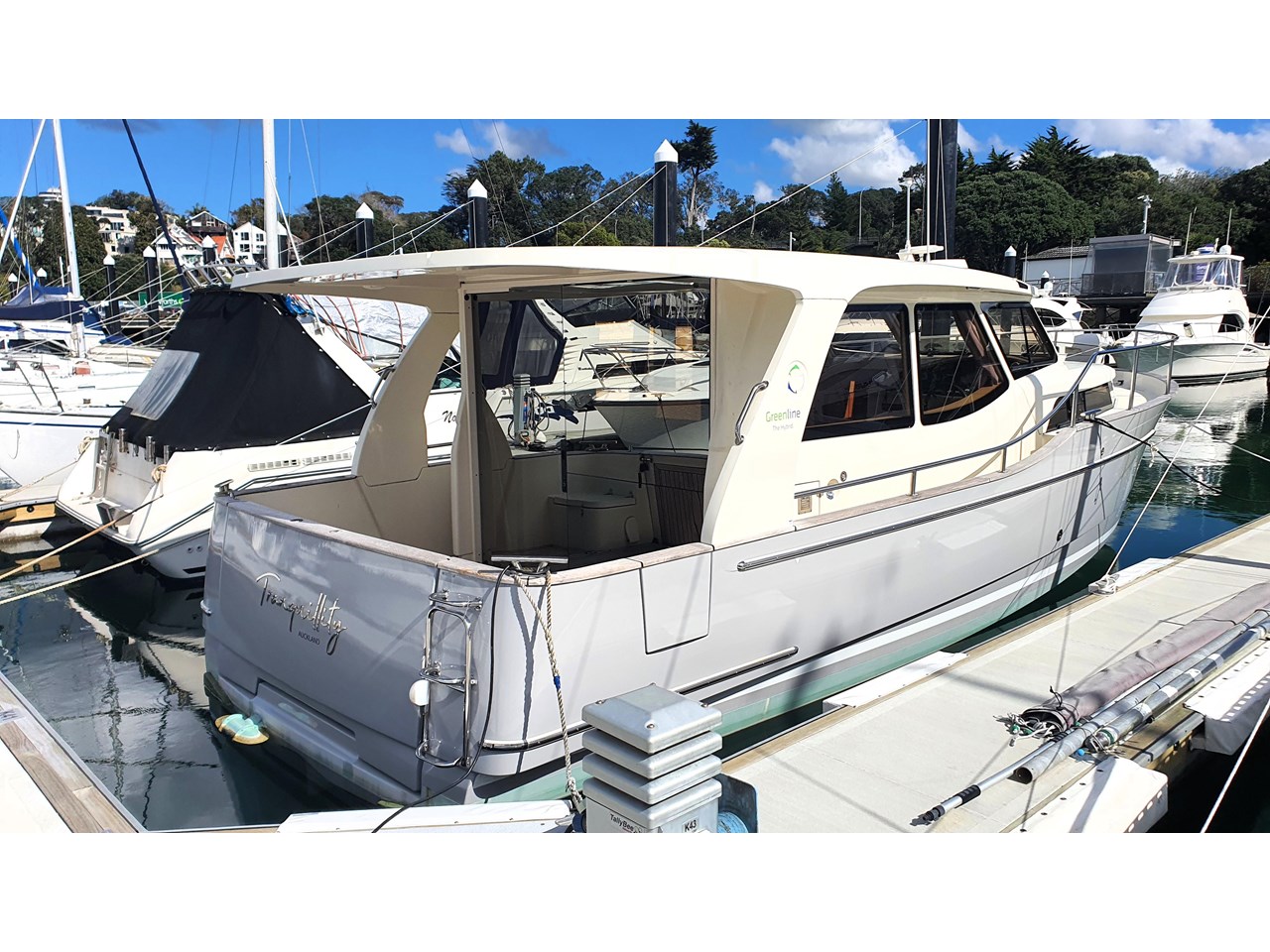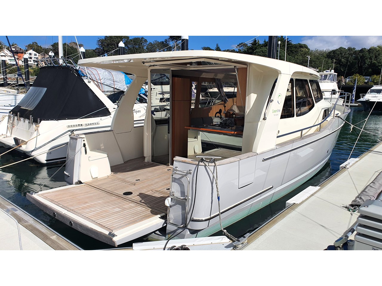 New to the market, this beautiful Greenline 33 has just been vinyl wrapped plus new antifouling and propspeed applied. The exterior looks like new and the interior is also in excellent condition. The interior upholstery has all recently been removed and fully dry cleaned and looks like new again. Plenty of other recent work has been done so that the next owner gets a full turnkey vessel.