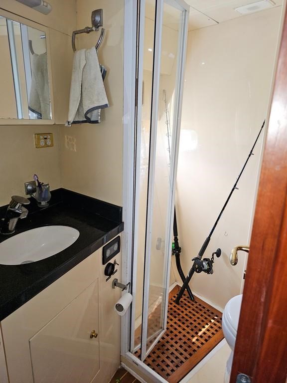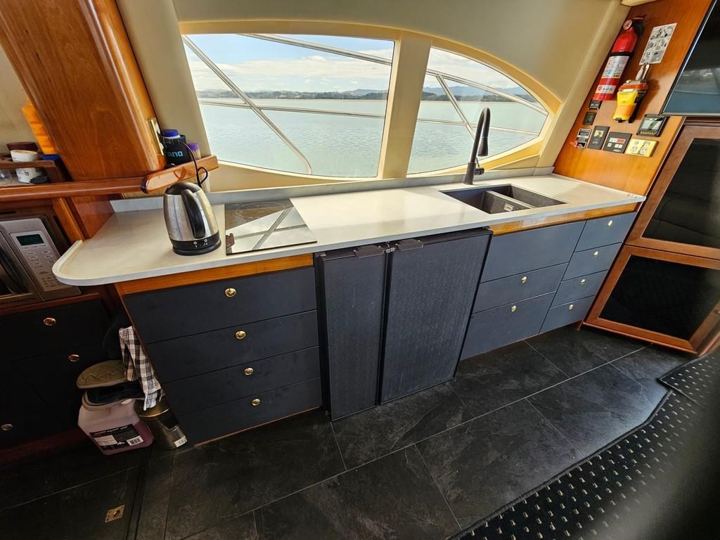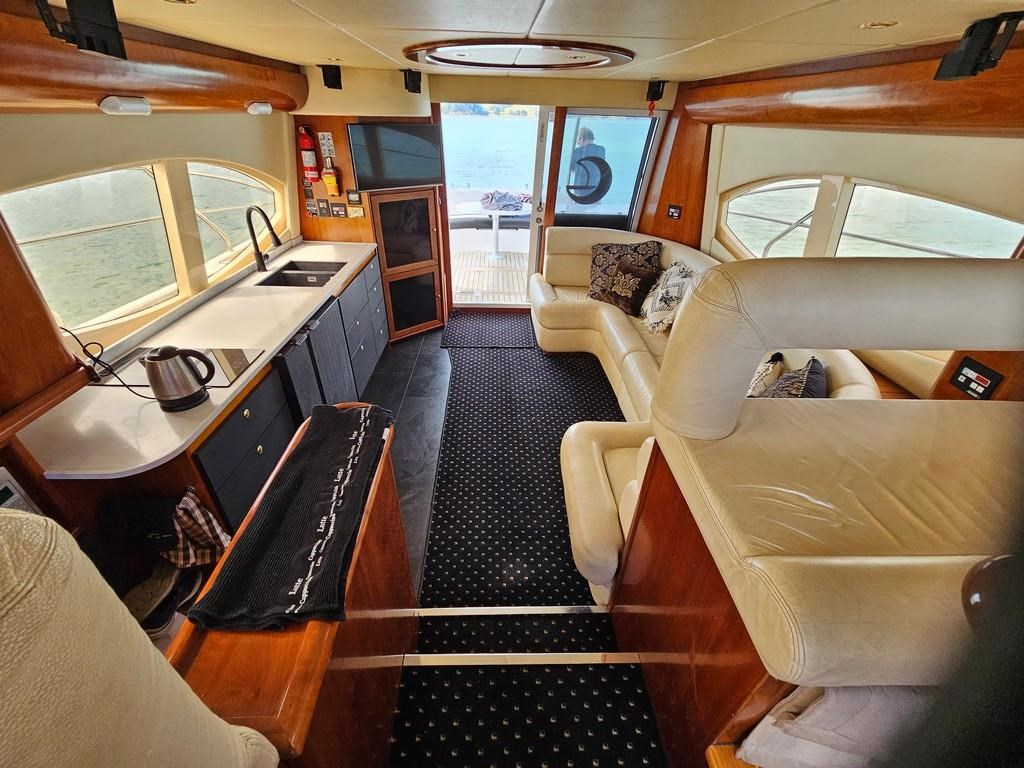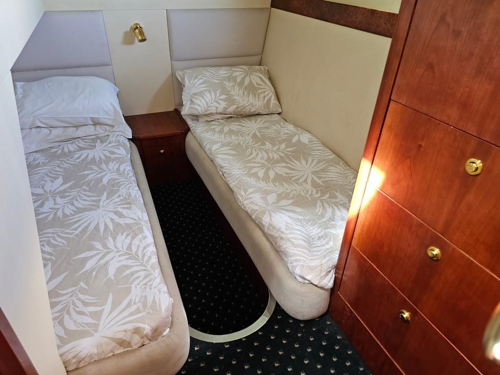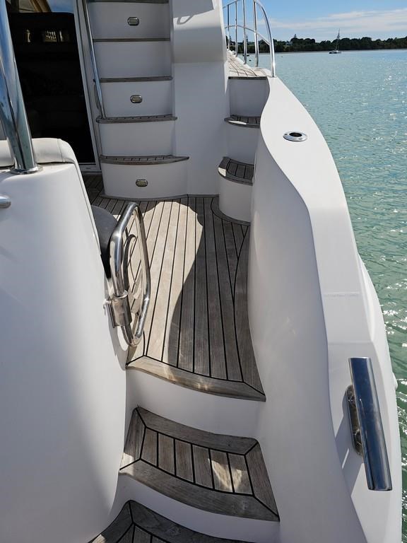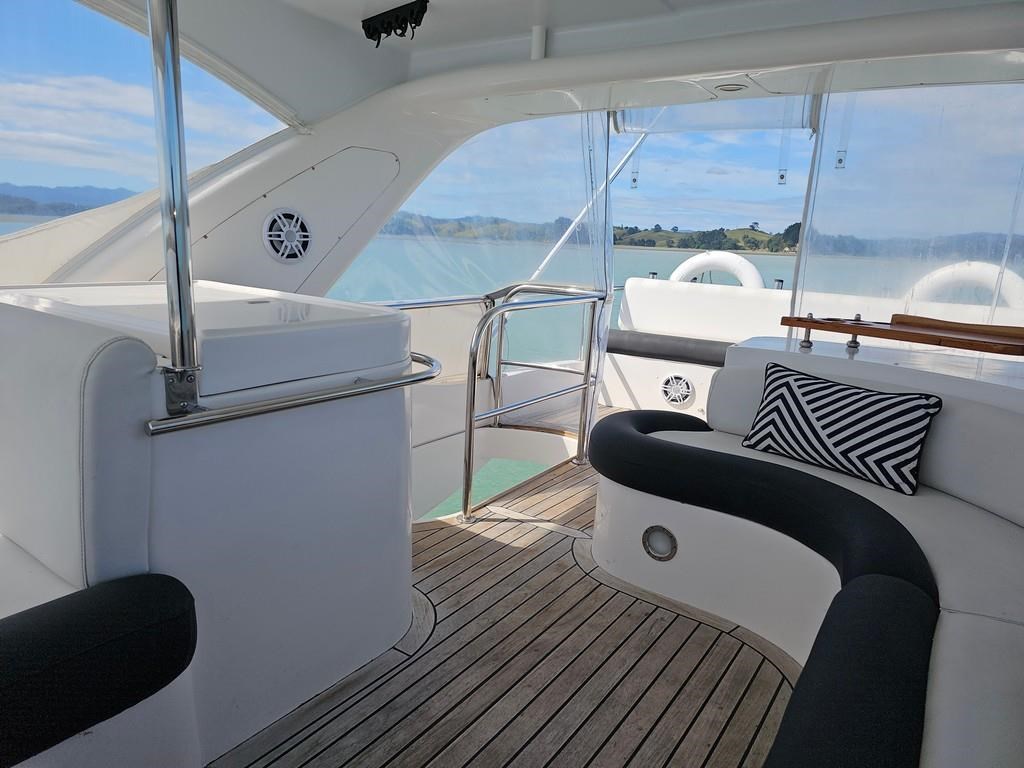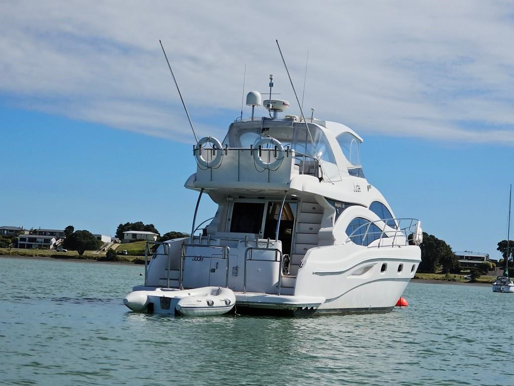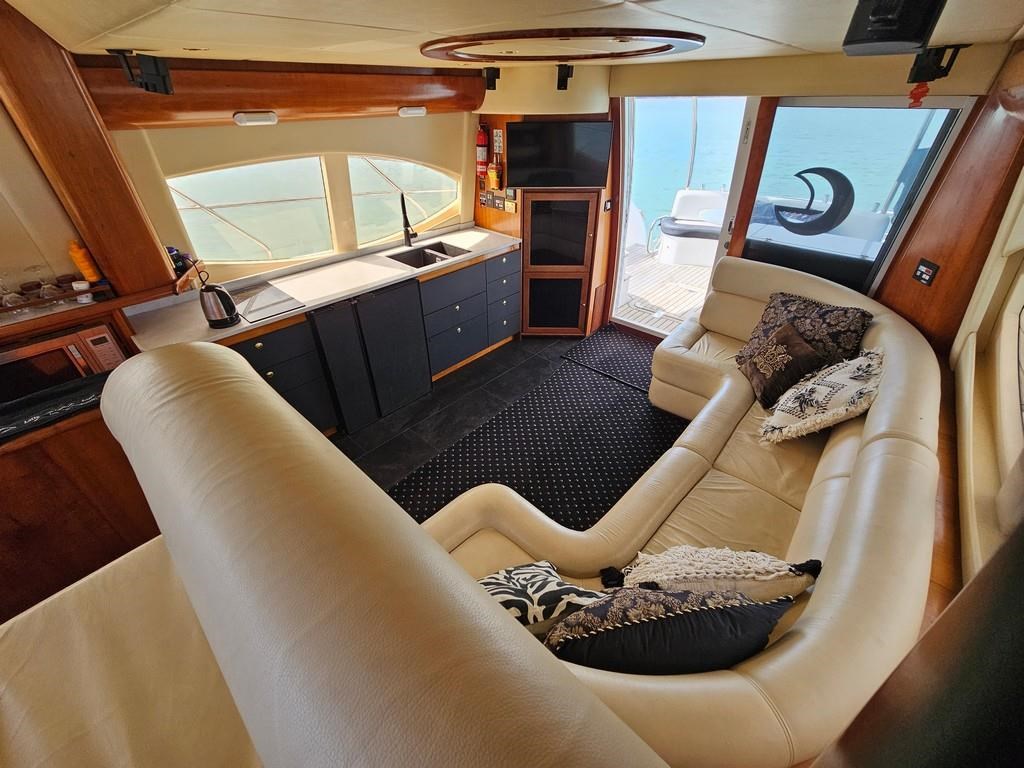 Experience luxury and performance with the Gulf Craft Majesty 50, a 16-meter fibreglass motor yacht built in 2006. Powered by twin Volvo D9 575hp diesel engines with only 1700 hours, this vessel offers a smooth cruise at 20 knots and a top speed of 28 knots. Featuring a solid GRP hull, spacious 3-cabin, 2-bathroom layout including a master cabin with ensuite, and high-end amenities such as a 17 KVA Northern Lights genset, solar charging, air conditioning, and advanced Raymarine electronics. Enjoy teak decks, a flybridge with full helm and lounge areas, a large swim platform with underwater lights, and a water maker for extended cruising comfort. Perfectly specced for the luxury market and ready for viewing in Ohiwa Harbour, this Majesty 50 combines style, comfort, and reliable performance for discerning boaters.