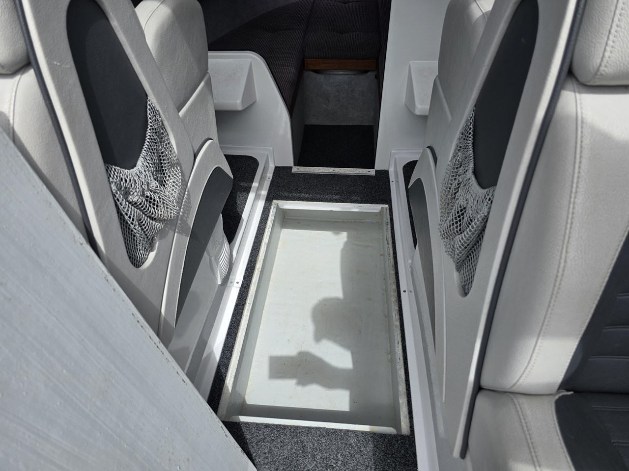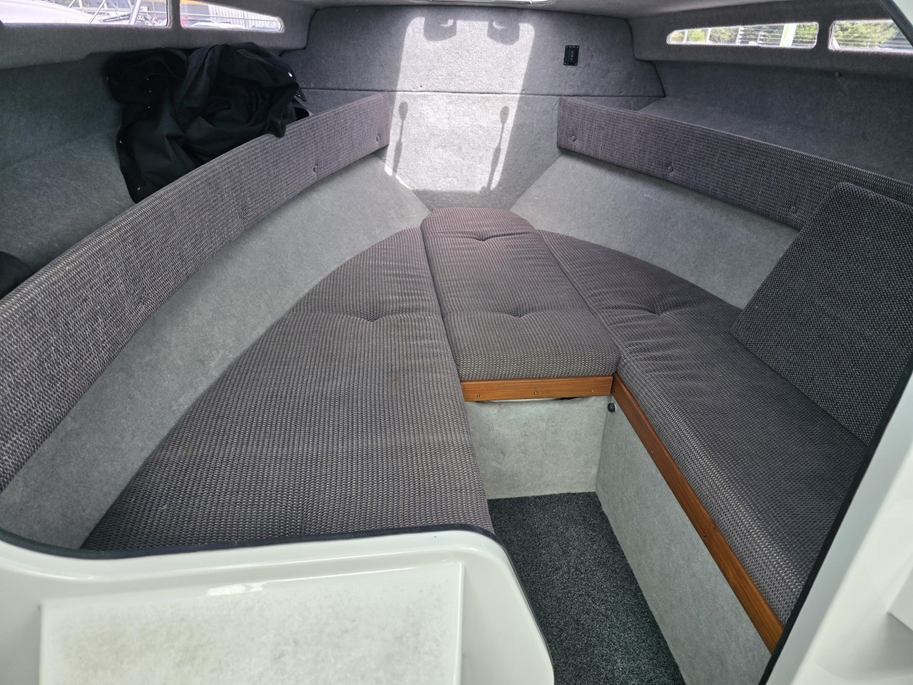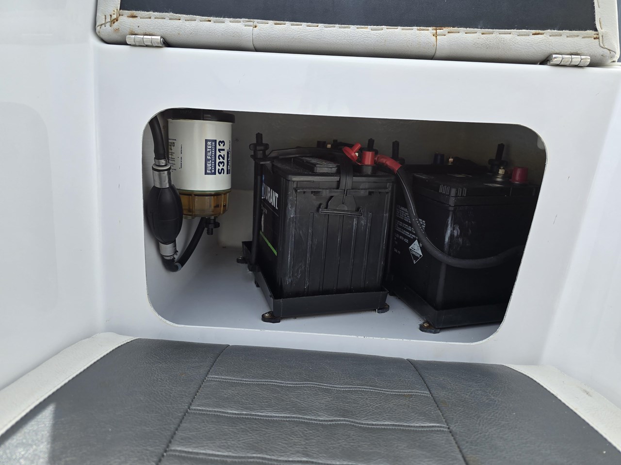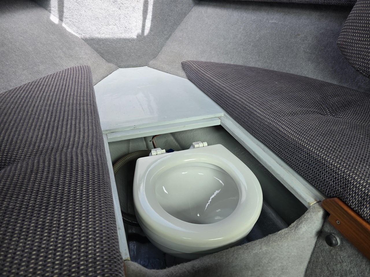 Comfort and liveability are exceptional, with a cabin infill squab, electric toilet, and under-seat freezer making extended trips and overnight stays genuinely enjoyable. The full bimini, canopy, clears, rod holders, and bimini backdrop provide outstanding weather protection and on-water versatility.