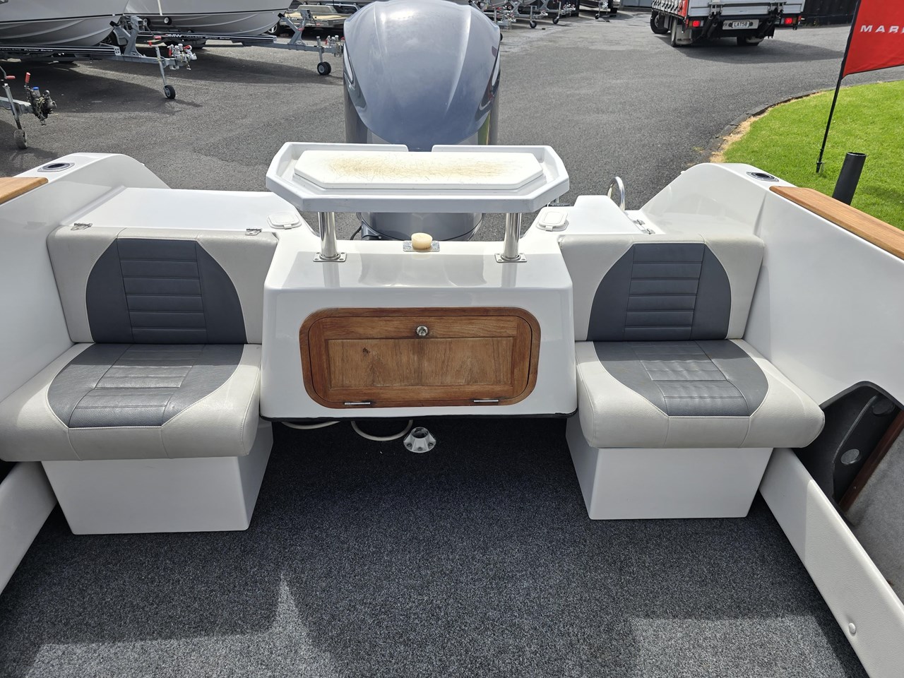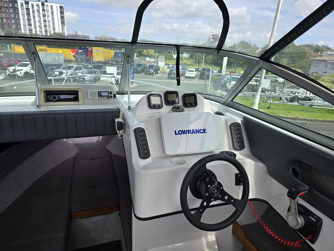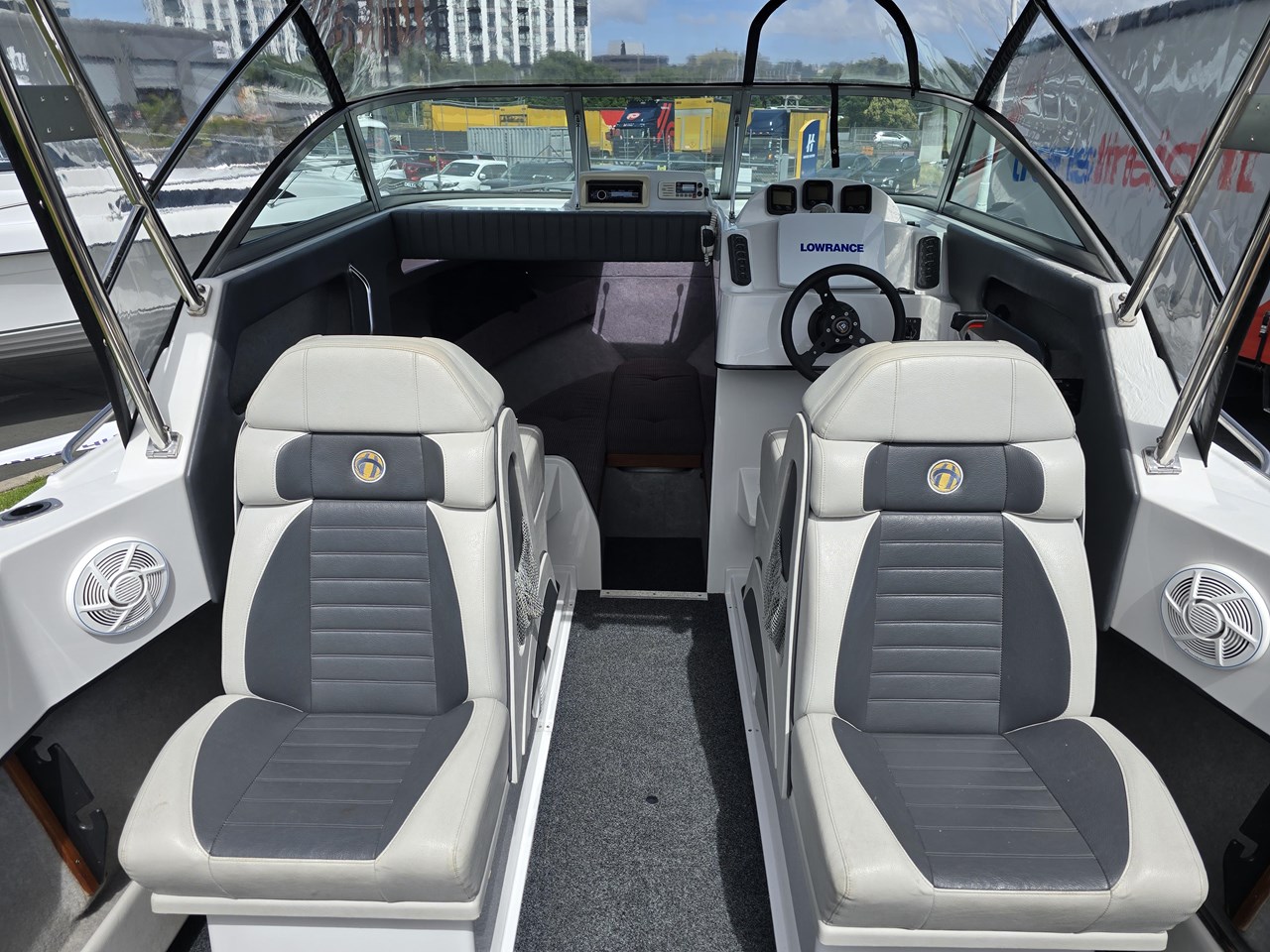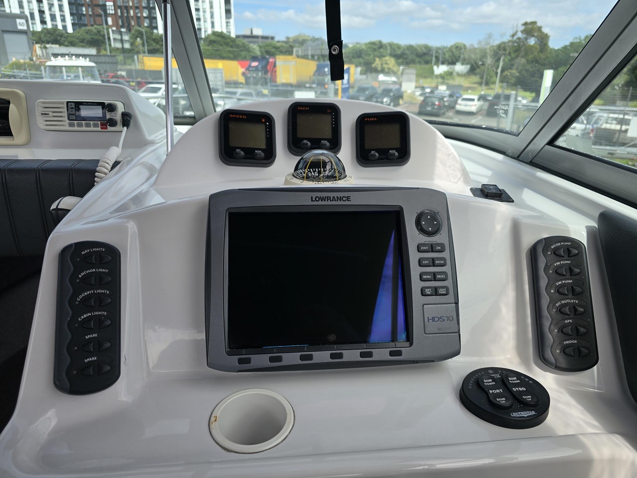 Equipped to an impressive standard, this SF660 features a Lowrance HDS-10 chartplotter/sounder for reliable navigation and fish-finding, auto-retract trim tabs for optimal ride control, and a free-fall capstan for effortless anchoring. A full lighting package covers navigation, anchor, cockpit, and cabin lights, while both saltwater and freshwater washdown systems make post-fishing clean-up straightforward.