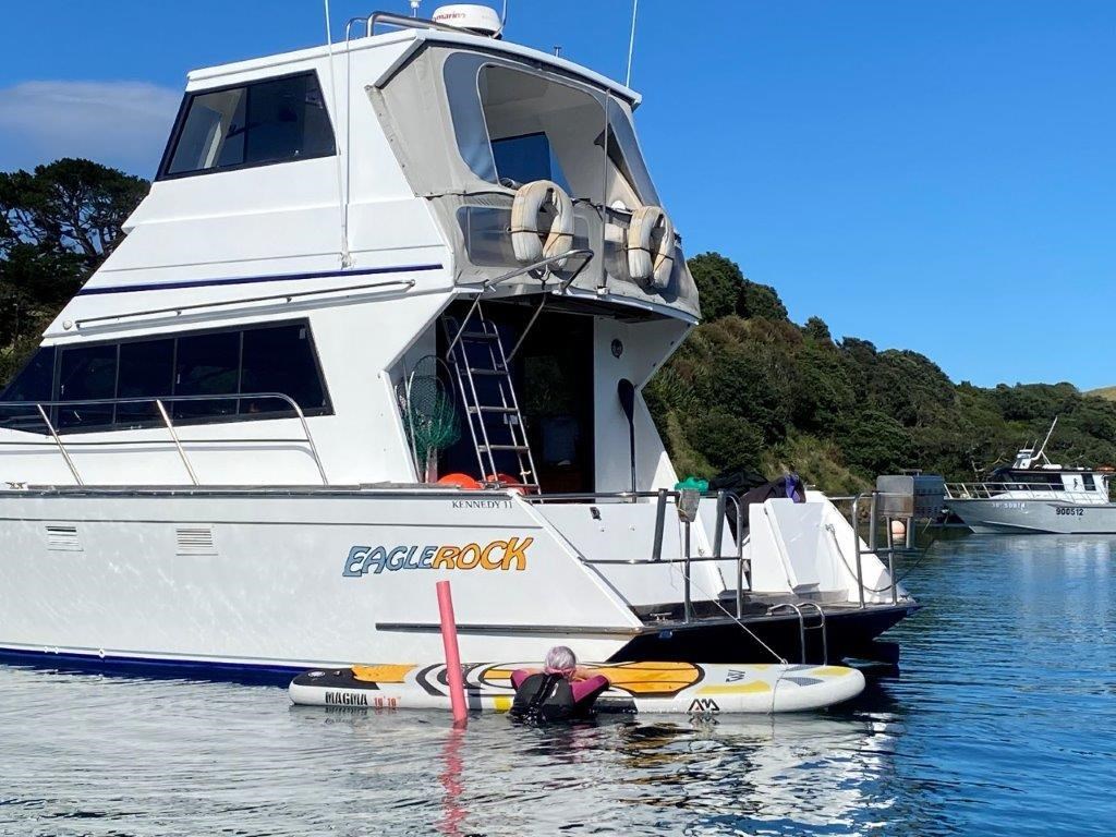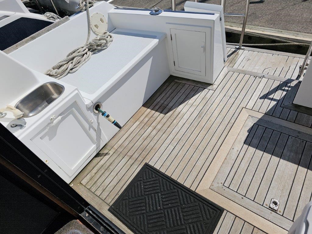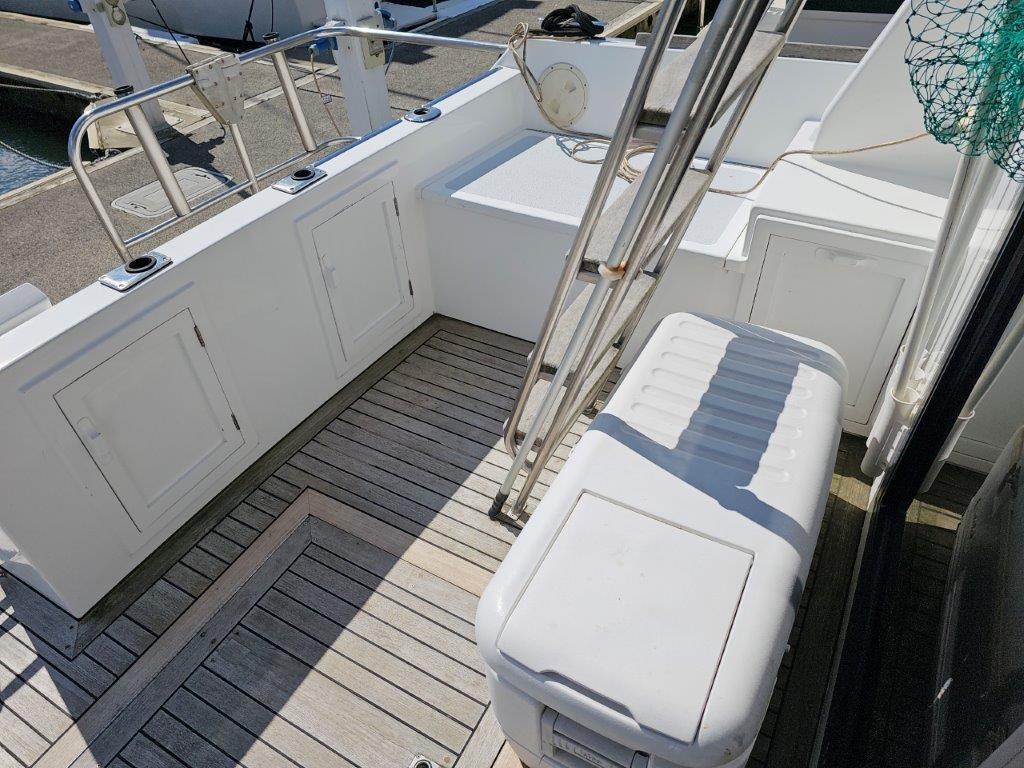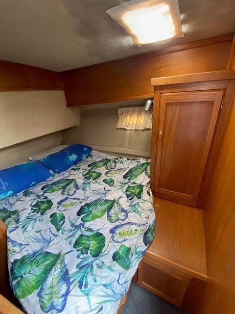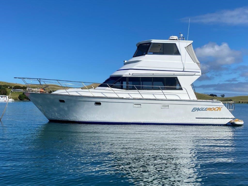 The Kennedy 11m (1995) is a robust and spacious timber-hulled powerboat built by the Wooden Boat Company, featuring a triple diagonal Kauri glassed over construction. Powered by twin Cummins 6BT 210hp diesel engines with shaft drive, it offers a comfortable cruising speed of 12 knots and a top speed of 21 knots. This vessel boasts a generous 11.3m length overall and a 3.9m beam, providing ample space with two cabins including a master cabin with a double bed and a forward cabin with four bunk beds. The modern enclosed flybridge is equipped with advanced navigation electronics such as Raymarine Axiom, autopilot, and VHF radio. Additional amenities include a large dinette, aft galley with gas hob, grill, and oven, stainless steel tanks for fuel and freshwater, a lithium-ion house battery bank with Victron inverter charger, and a teak cockpit with swim platform. Ideal for those seeking a big volume twin cabin boat with modern features and excellent value, the Kennedy 11m is perfect for comfortable cruising and extended stays on the water.