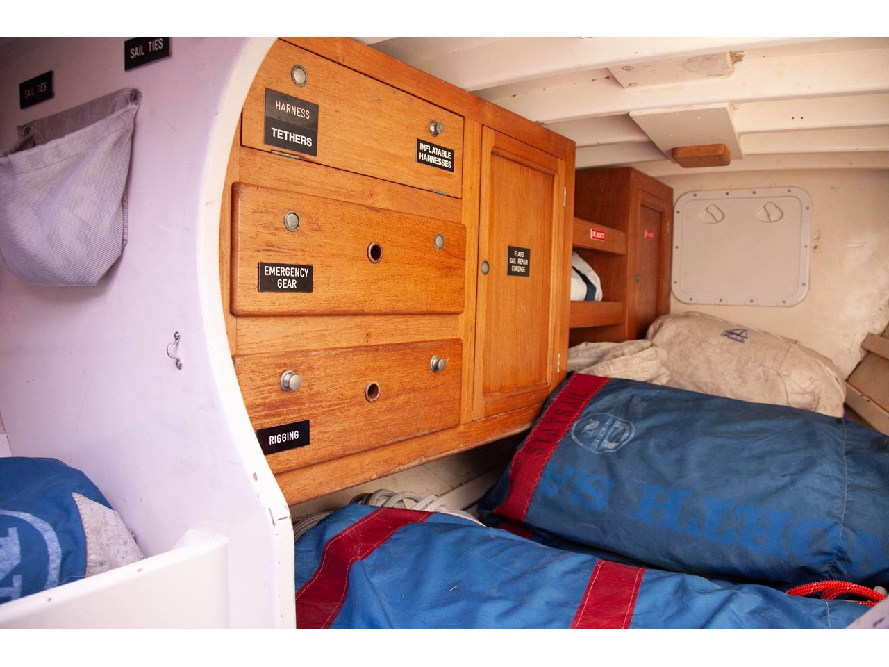 A custom white painted Hall Spar carbon fibre mast was fitted in 2008. The standing rigging is Nitronic Rod and all running rigging is current and well maintained. There are two Spi carbon poles. There is a Jockey pole. The Boom is painted Alloy. Mainsail handling is folded to the boom.