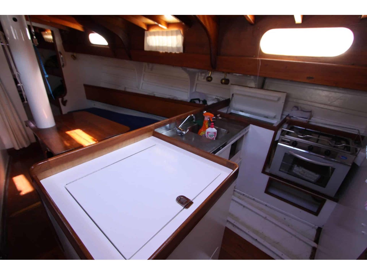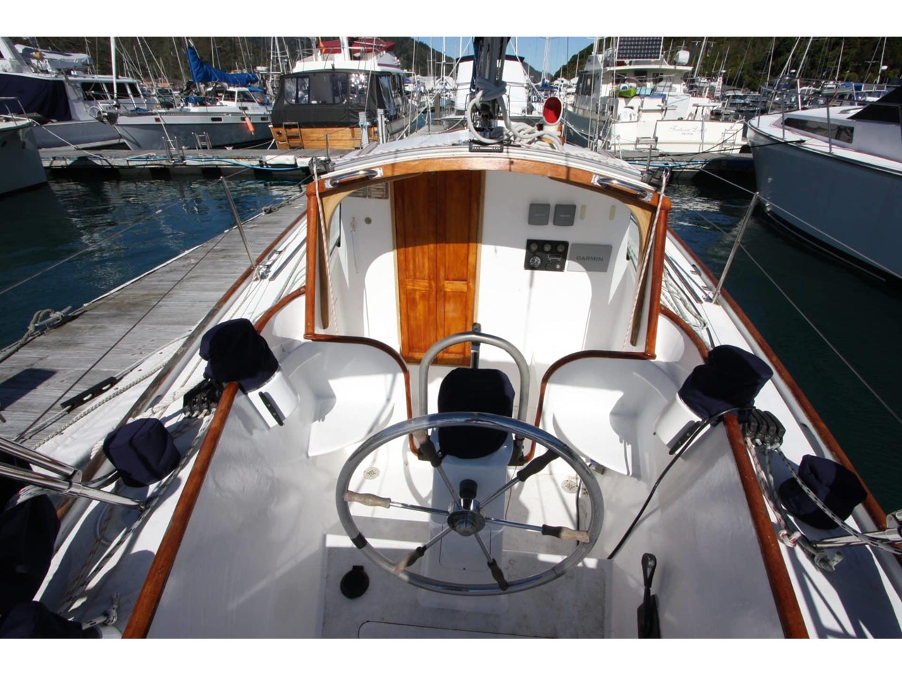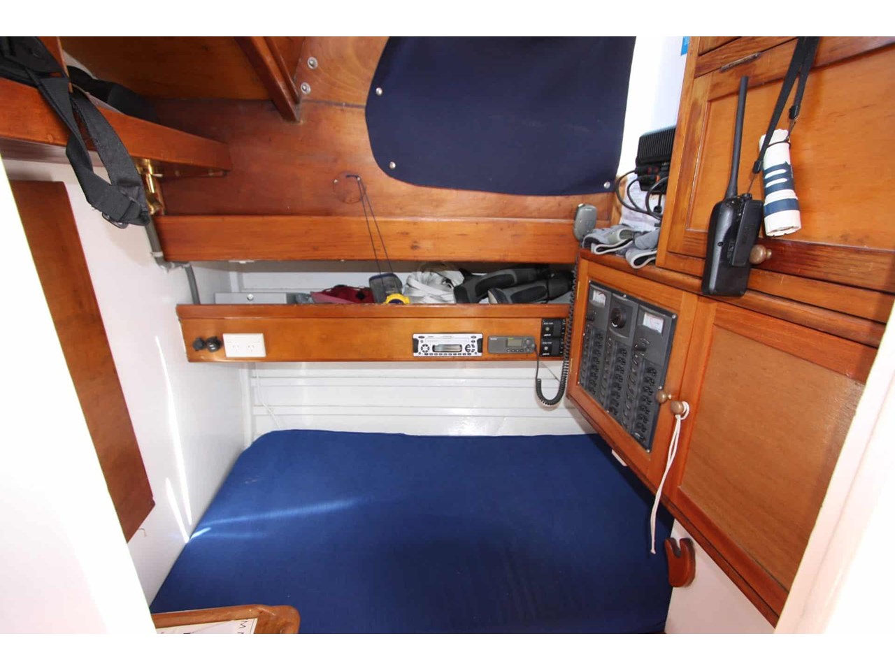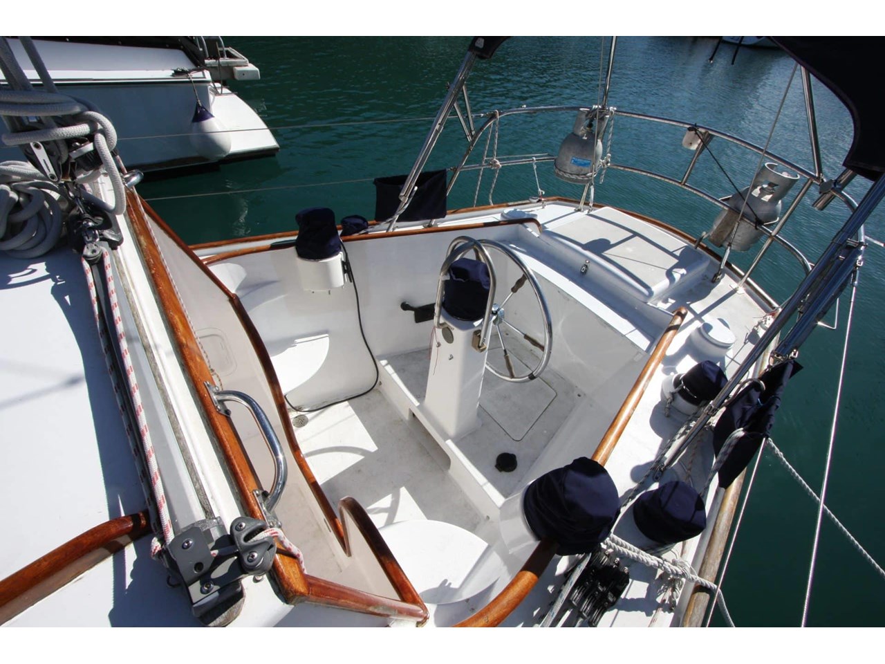 Navigation and electronics include a Garmin GPS, depth sounder, and wind instruments. She's equipped with a diesel cabin heater, gas Califont with cockpit shower, chart table and charts. Rigging was replaced in 2006, she carries a Reefrite roller headsail, mainsail bag with lazy jacks, and a basic sail wardrobe.