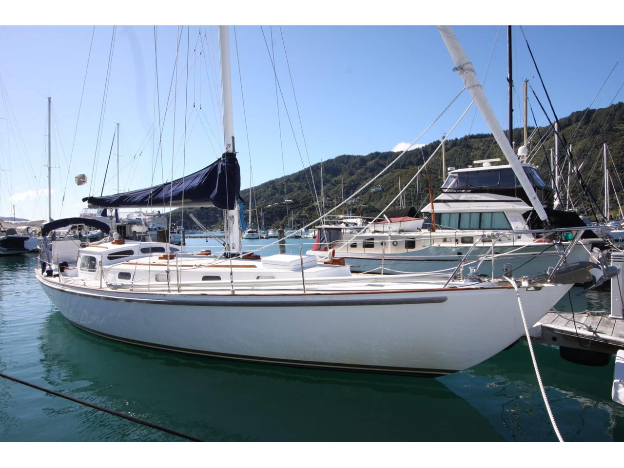 Taonui is a classic offshore cruiser-racer built by master boatbuilder John Lidgard for his own use. A new Volvo Penta 55hp diesel was installed in 2006 with approx. 900 hrs. She's triple-skin Kauri with a round bilge hull and has been consistently maintained. Taonui has competed in local cruising and racing in and around the Marlborough Sounds.