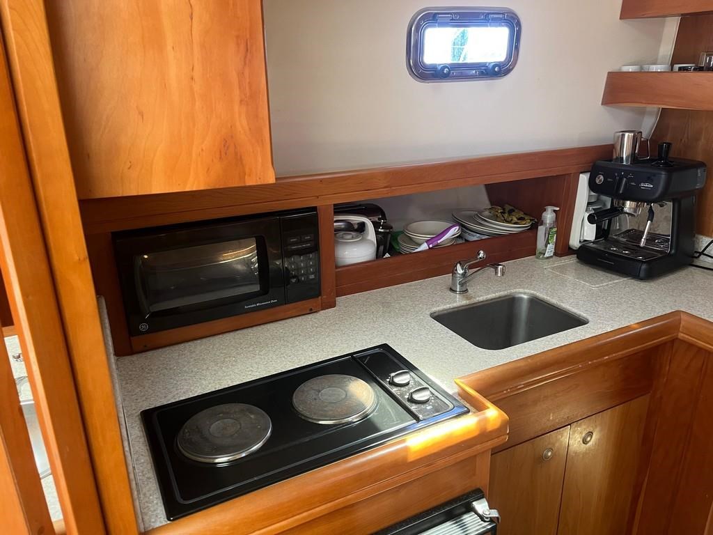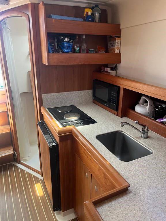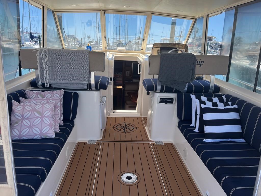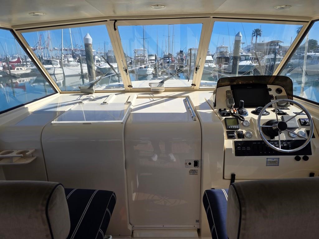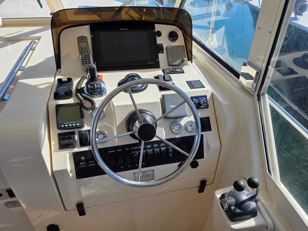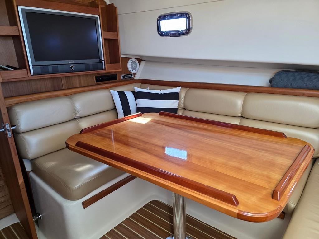The Mainship Pilot 34 (2006) is a well-crafted 11.5m fibreglass power boat designed for comfort and ease of handling. Powered by twin Volvo D4 260hp IPS drives with approximately 763 hours, it offers a smooth cruising speed of 15-18 knots and a top speed of 24 knots. This vessel features a spacious helm with advanced Volvo joystick docking controls, Raymarine 12 touchscreen navigation, and electric capstan for effortless operation. The social layout includes a saloon with dinette and leather seating convertible to a double bed, air conditioning, satellite TV, and a fully equipped galley with a 2-burner electric hob, microwave, and fridge/freezer. The lock-up shower and Vacuflush toilet with holding tank add to onboard convenience. With a 900L fuel capacity and 200L fresh water, plus a 8 KVA Kabota genset, this Mainship Pilot 34 is a tidy, ready-to-go sedan vessel perfect for summer cruising and entertaining.
