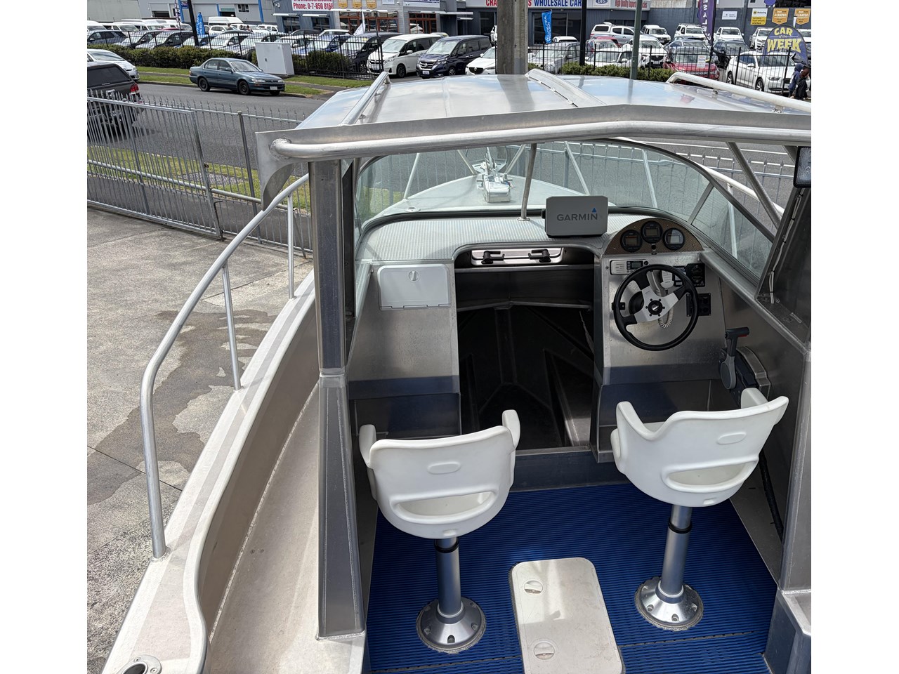 This is an incredibly well-built boat with excellent fishing room, allowing you to fish 360 degrees around the boat. Its in great condition!