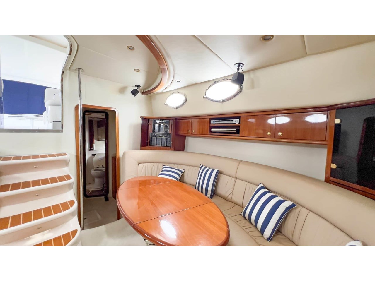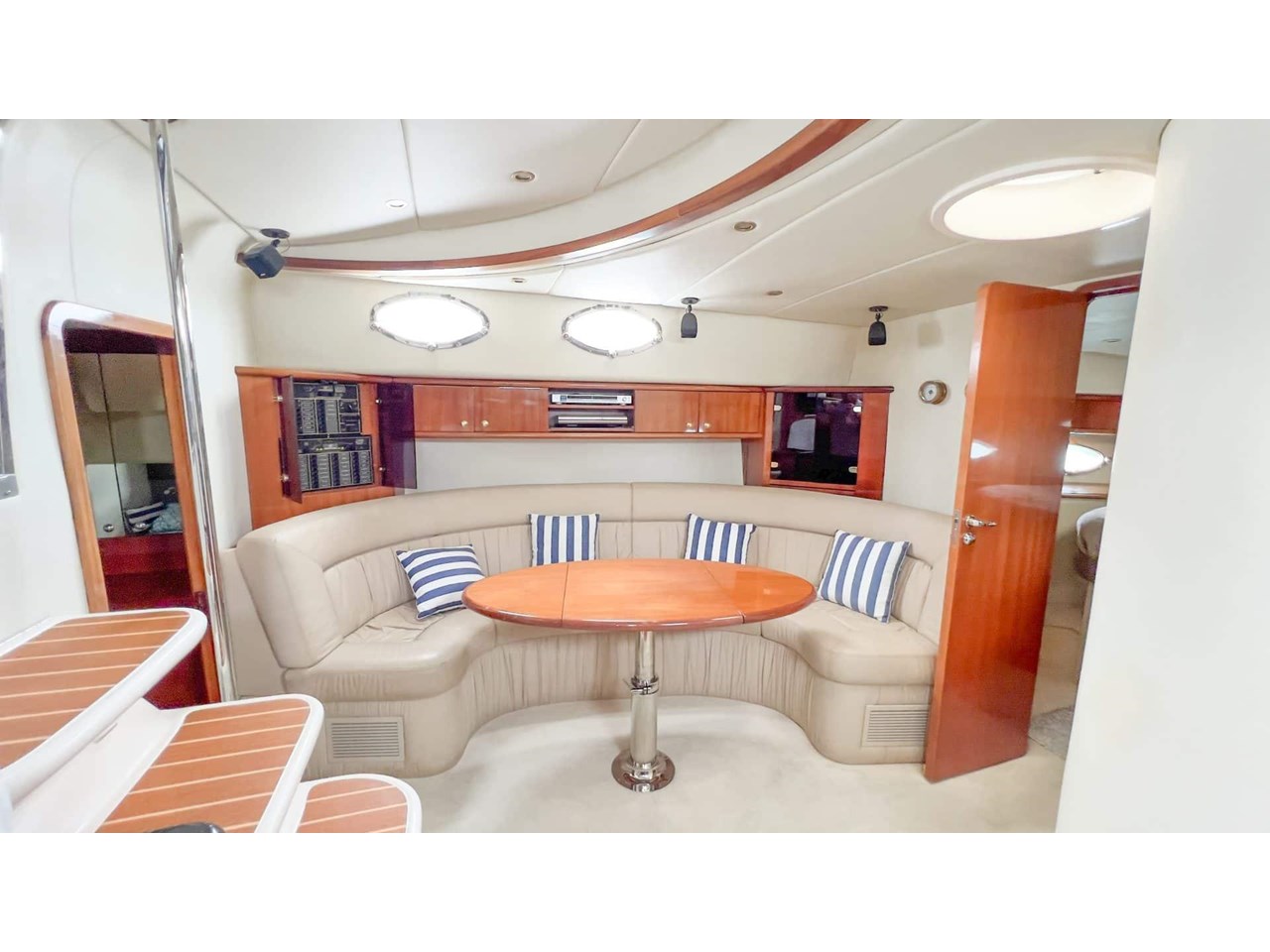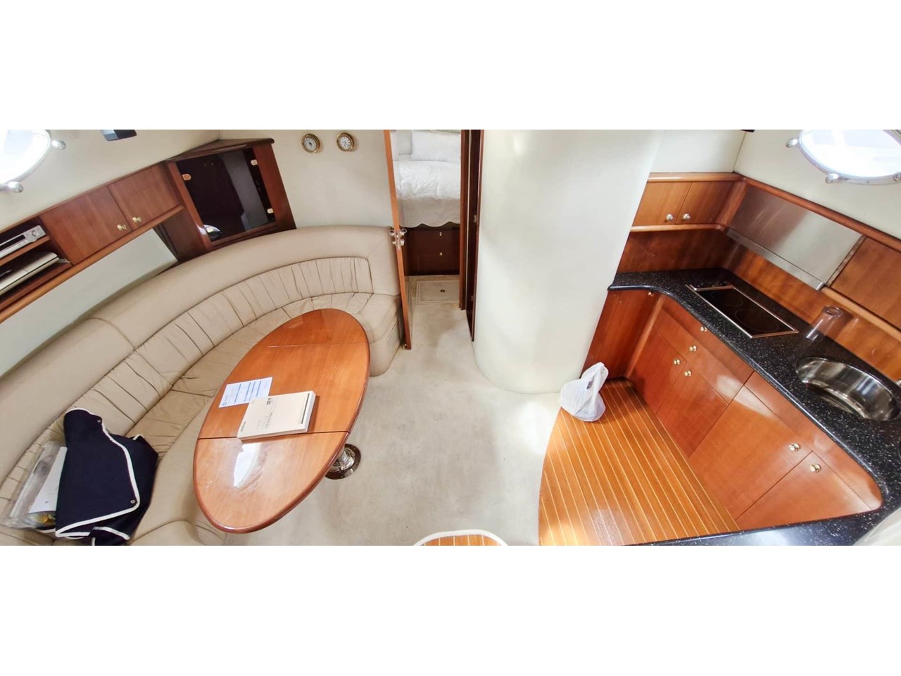 Bright saloon with panoramic windows and seamless flow to cockpit;