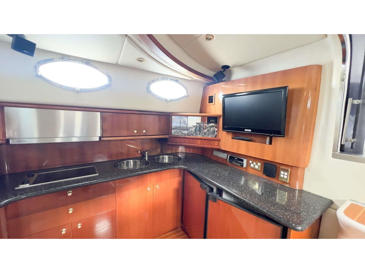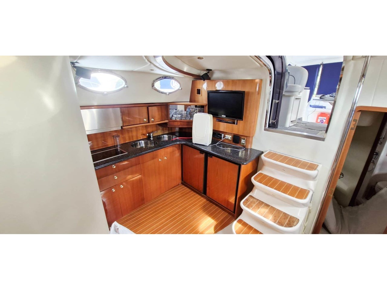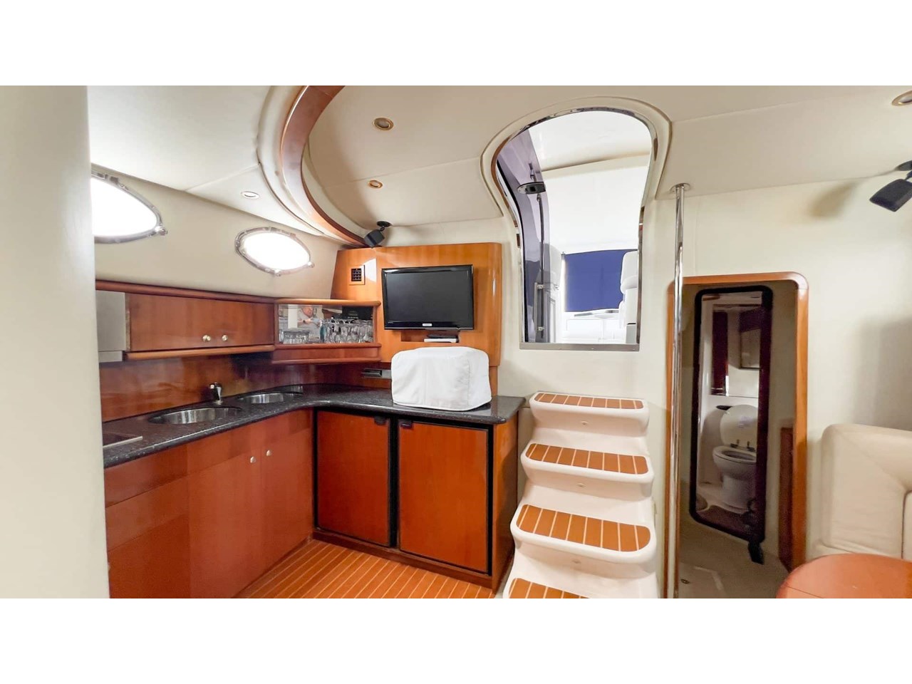 Bright saloon with panoramic windows and seamless flow to cockpit;