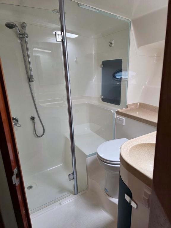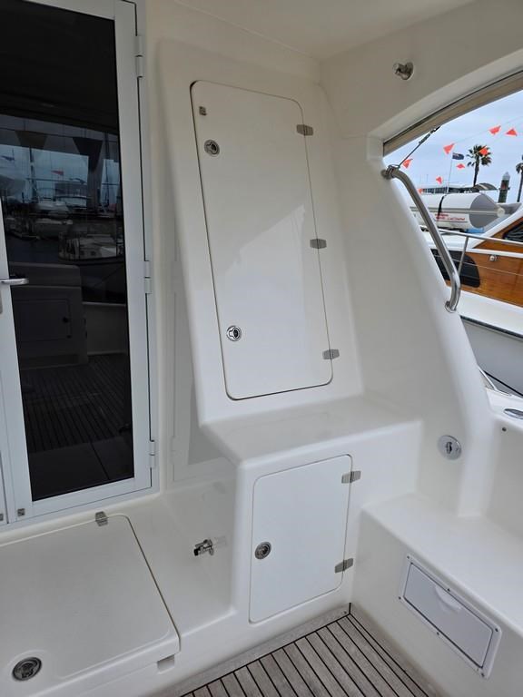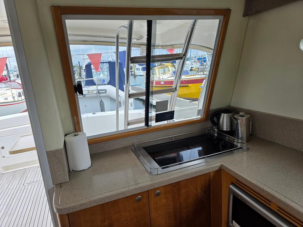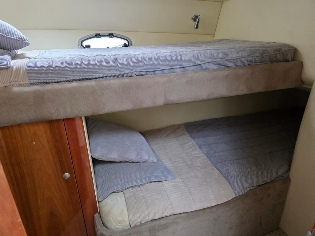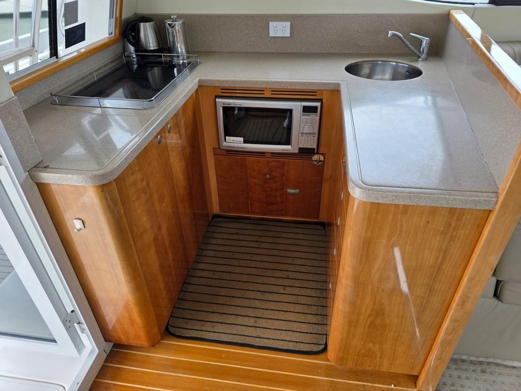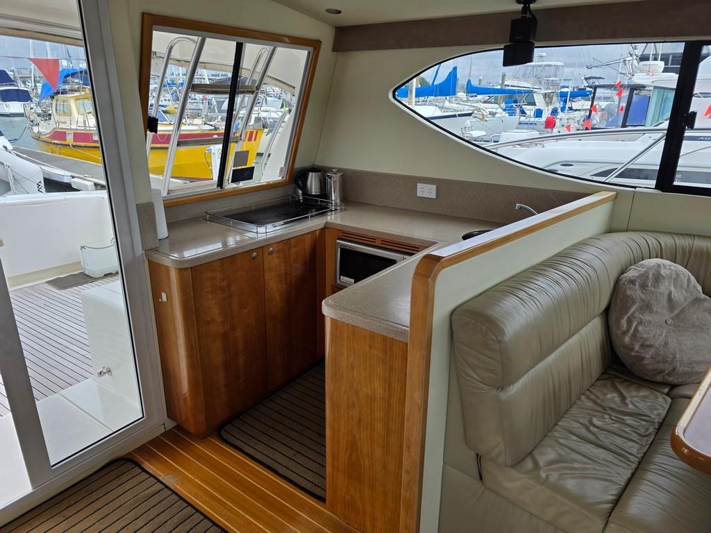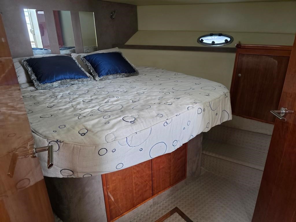 The Mustang 43 Flybridge Cruiser (2007) is a versatile and spacious powerboat perfect for family cruising and big game fishing. Measuring 14.15 meters in length with a 4.61-meter beam and a 1-meter draft, this fibreglass vessel offers a robust GRP construction and weighs approximately 18 tonnes when laden. Powered by twin Cummins QSC 500hp diesel engines with shaft drive, it delivers a comfortable 21-knot cruise speed and a top speed exceeding 27 knots. The boat features an enclosed flybridge, bow thruster, and a well-equipped galley with modern appliances including a dishwasher and multiple fridges/freezers. Accommodation includes two cabins with an island bed and ensuite, a guest cabin with two single beds, and convertible sleeping areas in the saloon and flybridge. Additional amenities include Furuno Navnet navigation systems with autopilot and radar, a Victron charger/inverter, an 11.5 KVA Onan generator, and fishing gear such as game poles and a live bait tank. This Mustang 43 has been meticulously maintained by its original NZ owner and is in fantastic condition, making it an excellent choice for both leisure and sport fishing enthusiasts.