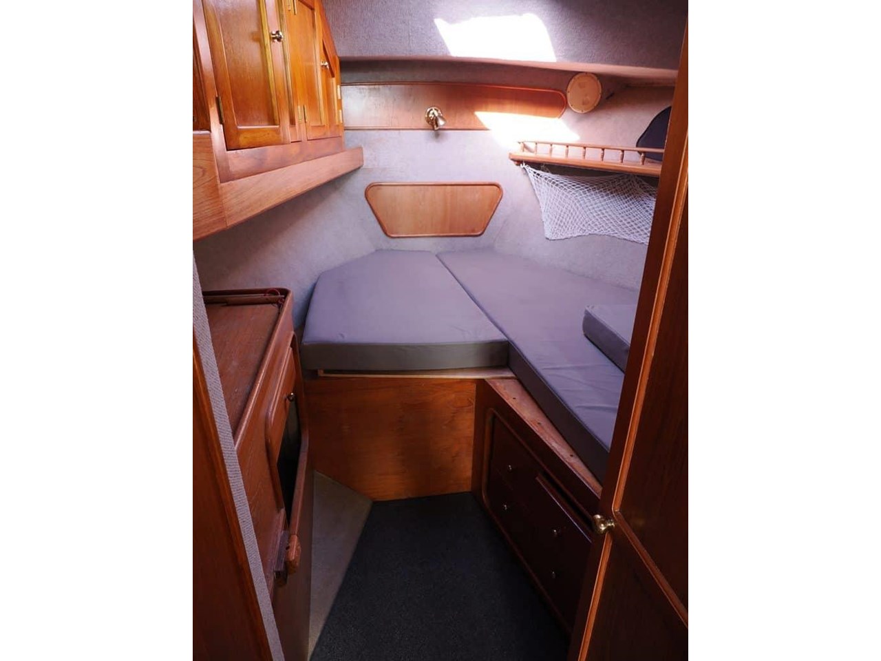 The diesel heater is vented into the main cabin and forward passageway.