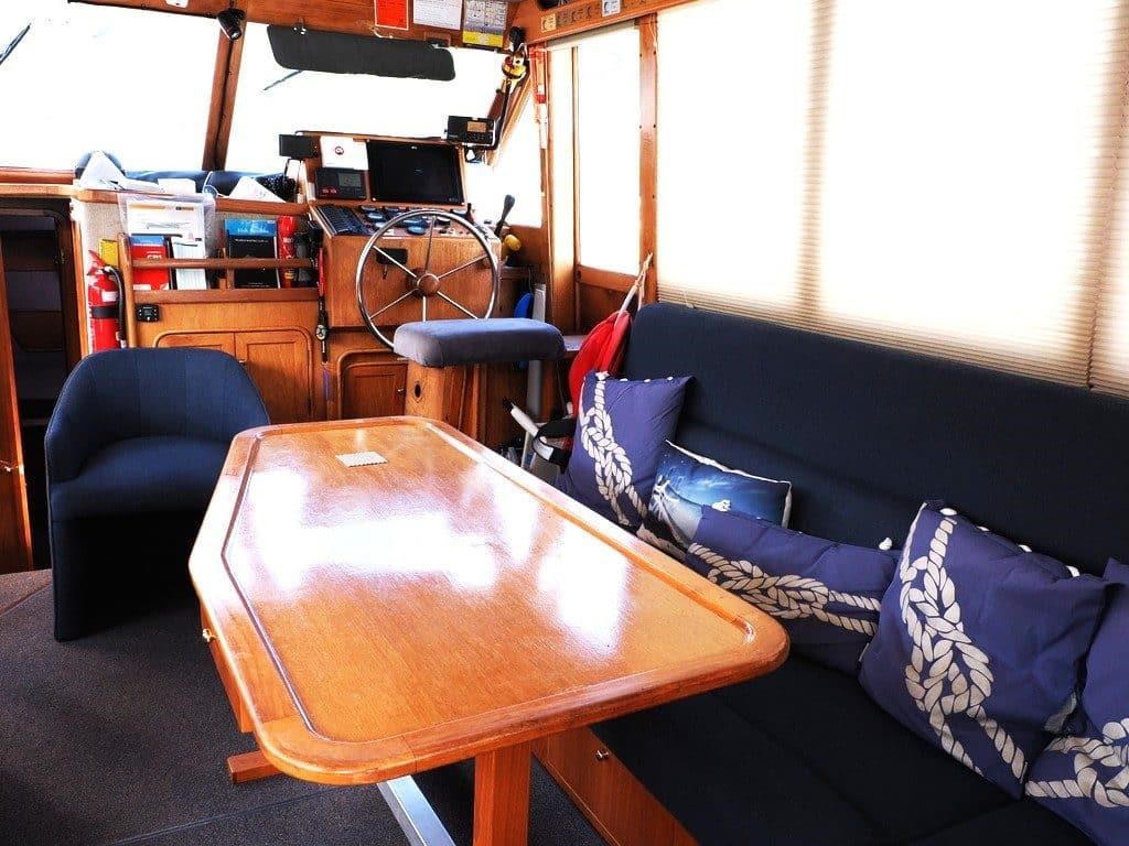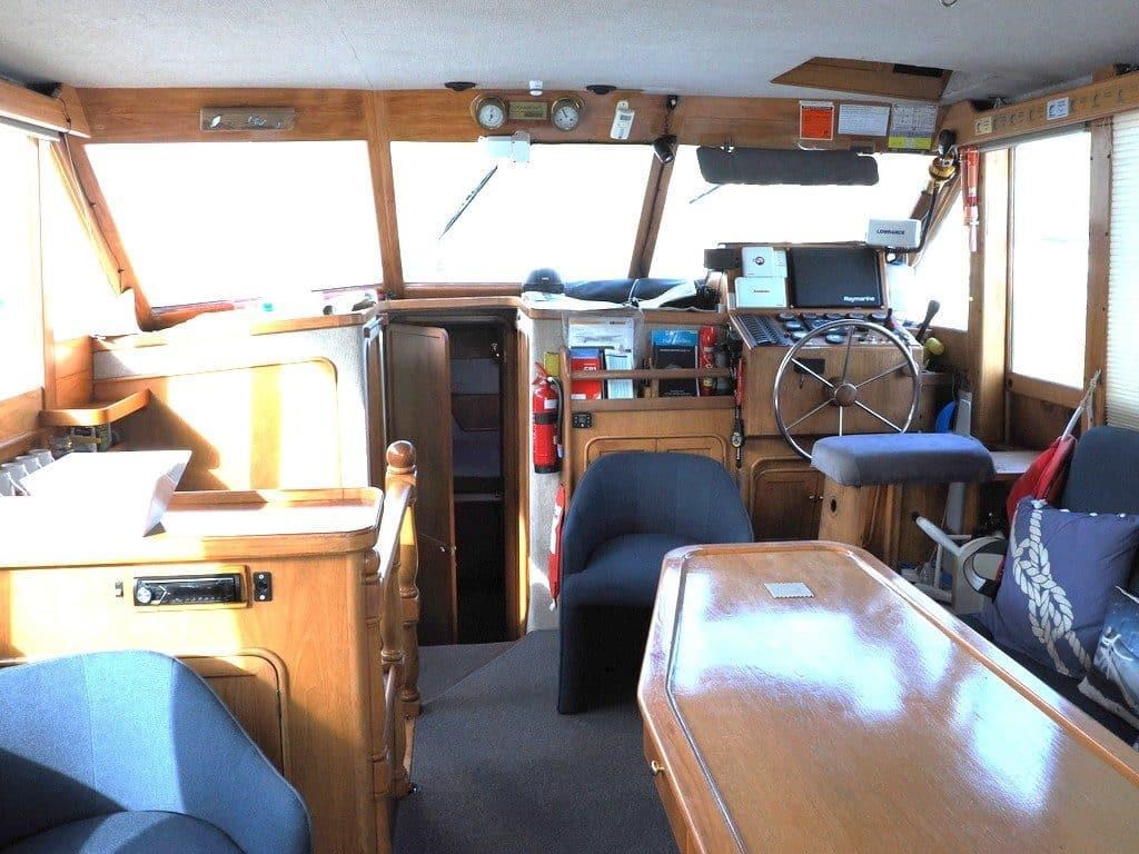 Originally built and equipped to survey standards for charter work, this vessel comes with a 12-inch colour plotter, depth sounder, radar, AIS, and bow thruster for easy handling. There are two helm stations, including a flybridge with cover and a convenient side helm door.