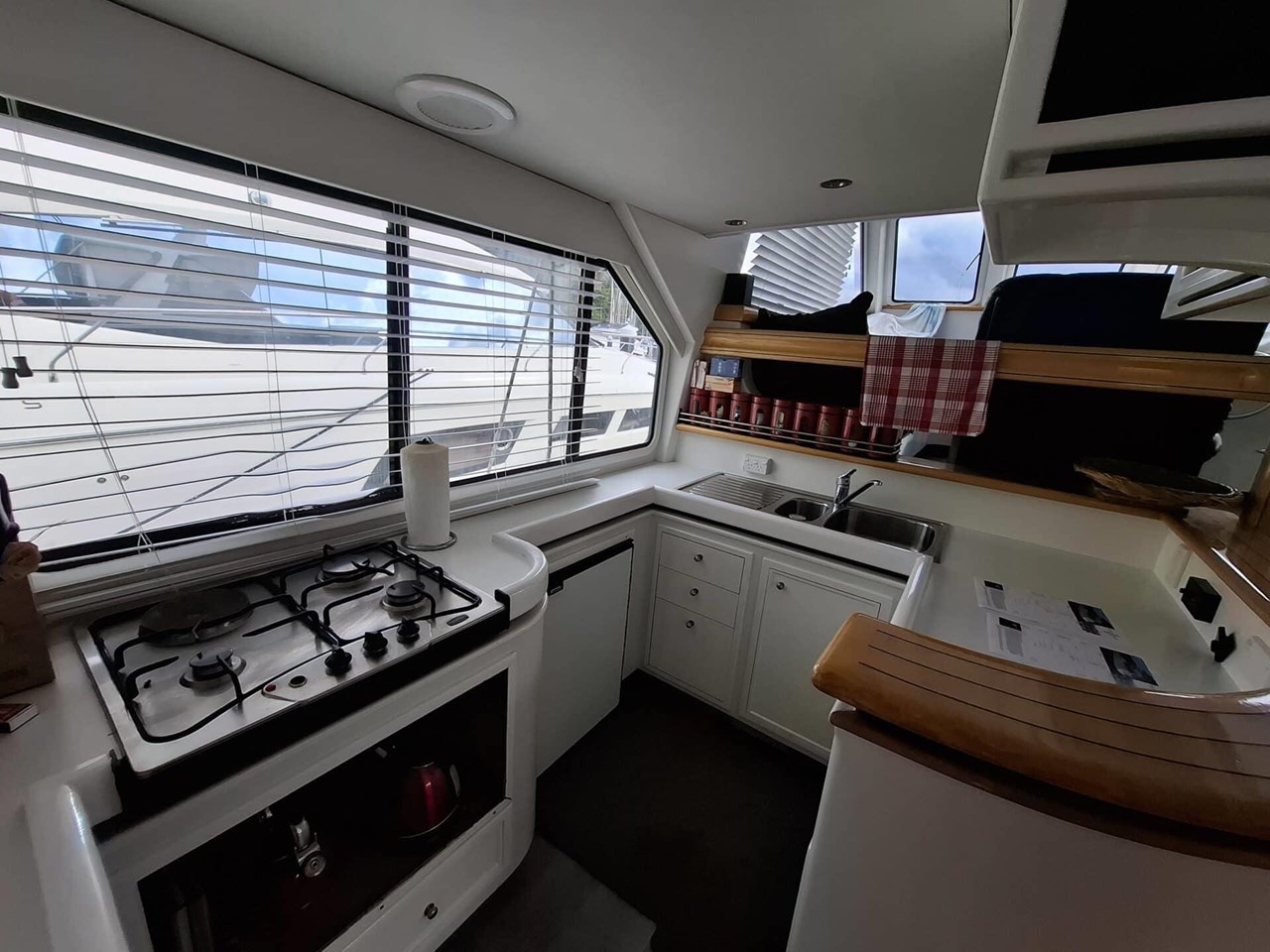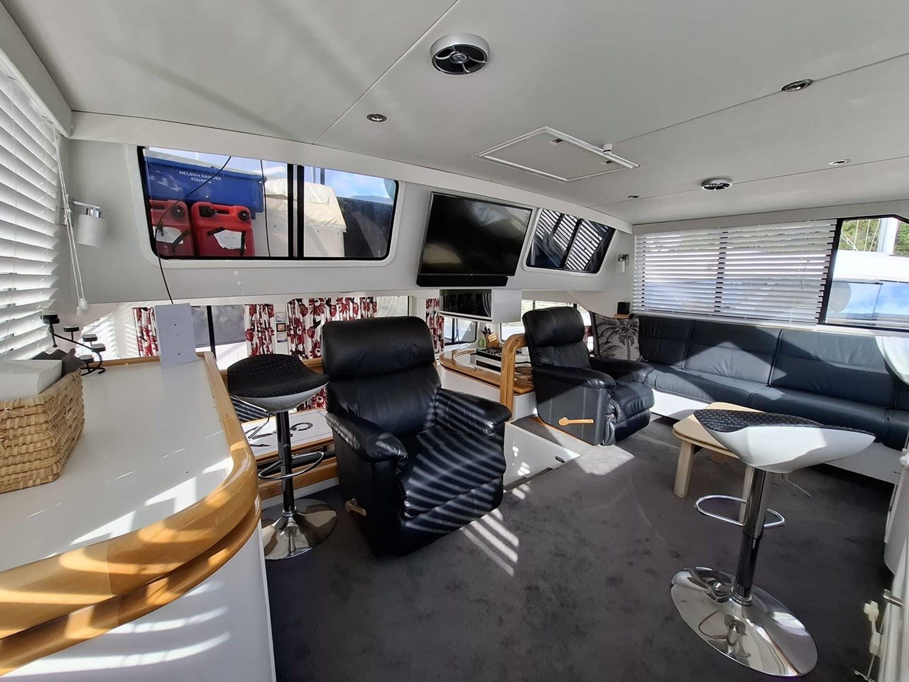 Well thought out, with easy get around areas. The room will astound you. Excellent vision from helm station and good access to all areas. A very well thought out vessel with serious cruising capability.