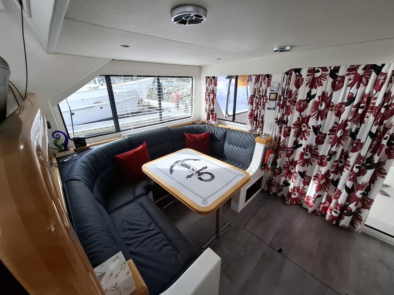If you are looking for a magnificent on water apartment, it would be hard to go past this Australian built Ocean Trek cruising catamaran. On boarding the vessel through the spacious aft deck area, you find a day bar to Port and lounging area to Stbd. Up a few easy stairs you have a lounge area and Nav station. Down stairs is the accommodation and Galley area.