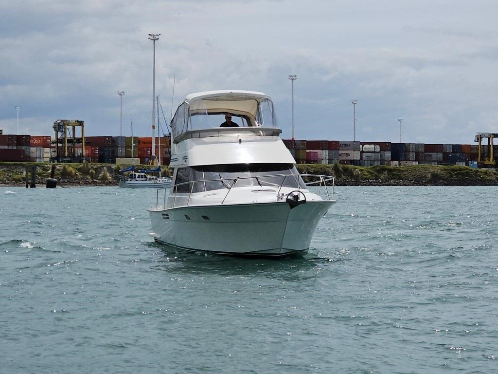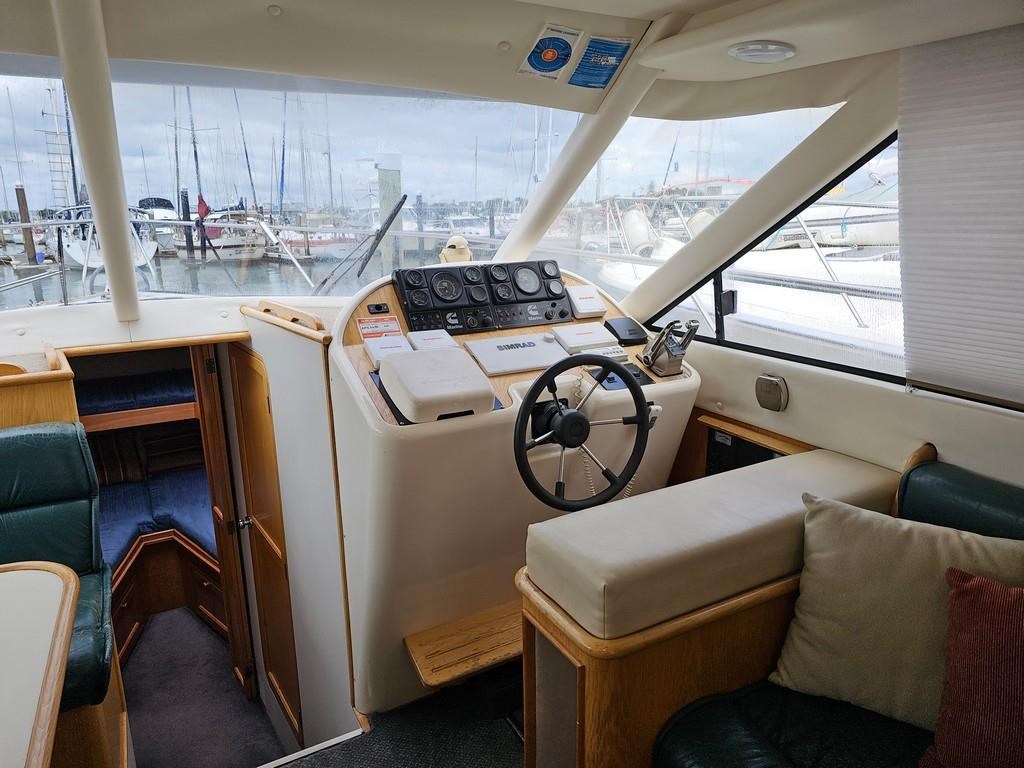 The Oliver Royale 4300 (1997) is a spacious and well-equipped 13.2m fibreglass powerboat, perfect for comfortable cruising. Powered by twin Cummins 315hp diesel engines with shaft drive, it offers a smooth and efficient ride with a cruising speed of 15 knots and a top speed of 26 knots. The vessel features a robust GRP construction, a 4.1m beam, and a shallow 1.1m draft, making it versatile for various waters. Accommodation includes two cabins with a master double bed and forward V-berth bunks, plus a lock-up shower and toilet. The saloon boasts leather seating and a pull-out couch, while the aft galley is equipped with a 2-burner gas hob, oven, and fridge. Navigation is enhanced with Simrad and Furuno displays, autopilot, and digital controls at both lower helm and flybridge stations. Additional amenities include an Eberspacher diesel heater, large cockpit with teak combings, live bait tank, freezer, and dinghy holder. With recent engine servicing and upgrades, this Oliver Royale 4300 represents excellent value and readiness for immediate use. Contact Tauranga Boat Sales for viewing and more information.