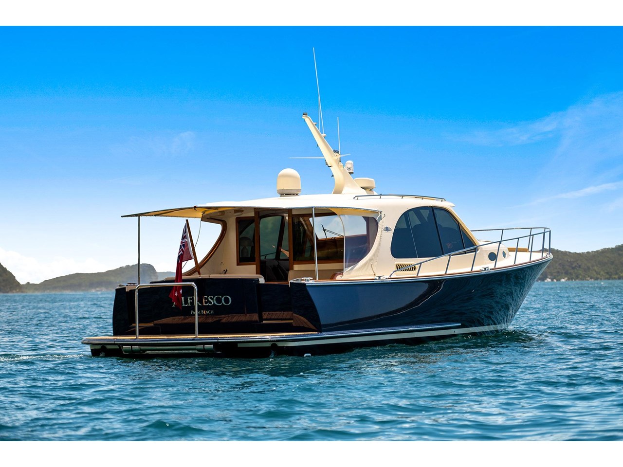 Alfresco is sure to turn heads wherever you, go her sleek, classic lines pair beautifully with her Flag Blue hull and Cream superstructure, accentuating the signature Palm Beach silhouette.