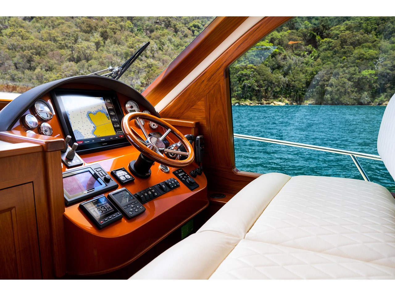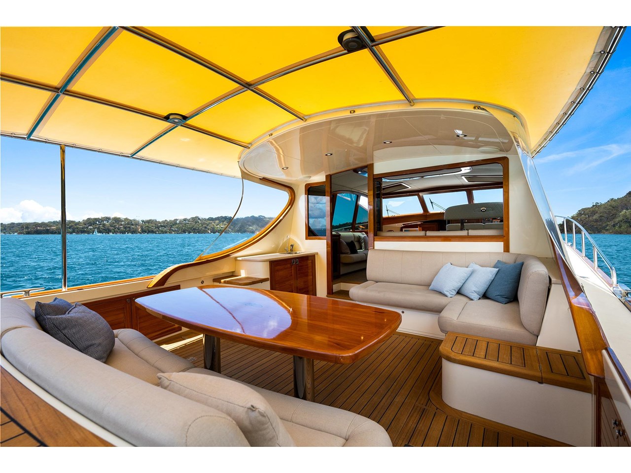 Alfresco comes stunningly tailored with a wide range of amenities for your day on the water. In addition, the previous owner has specified the beautiful teak and ash handmade flooring as a special feature, made to be durable for the years ahead.
