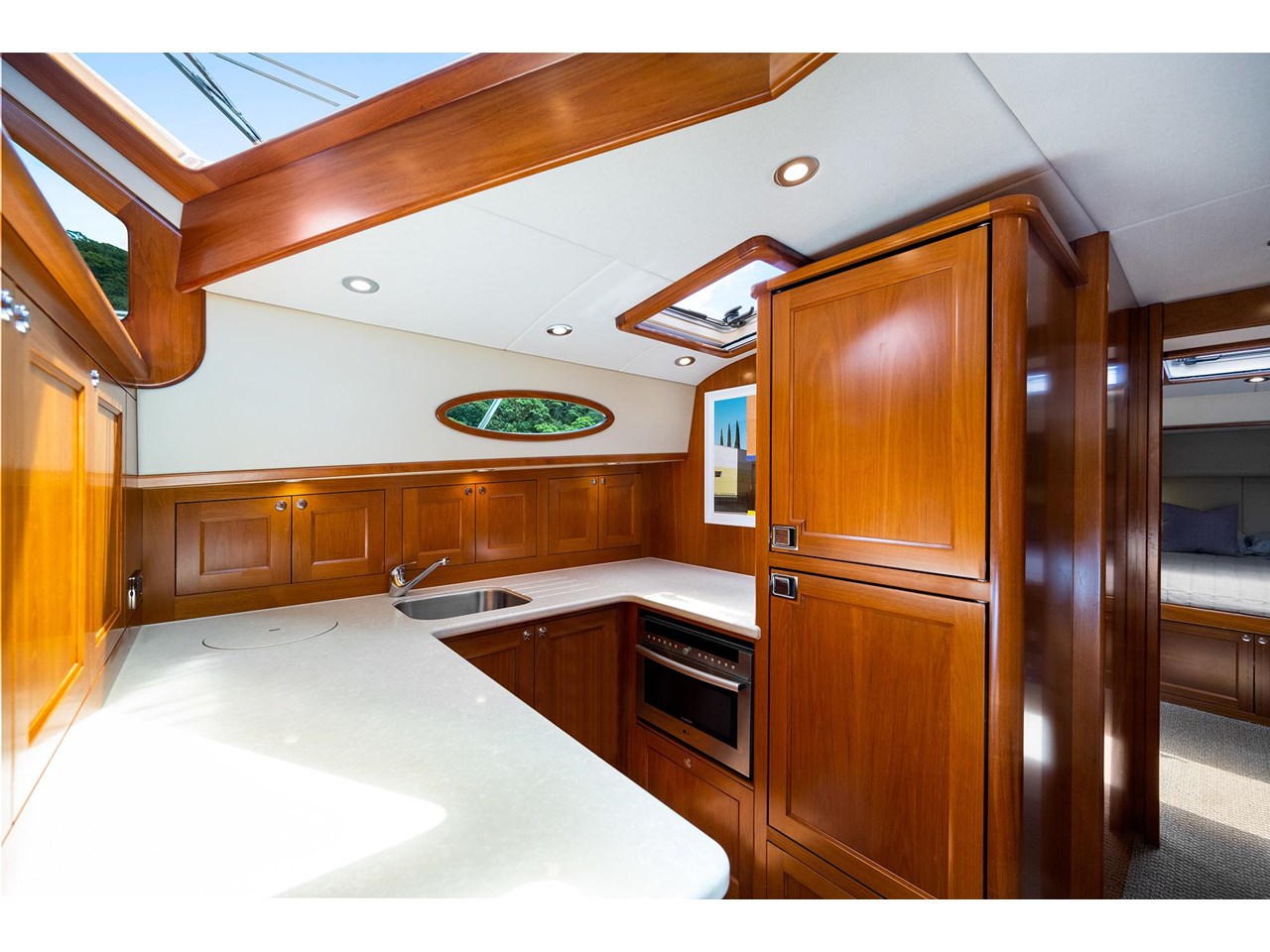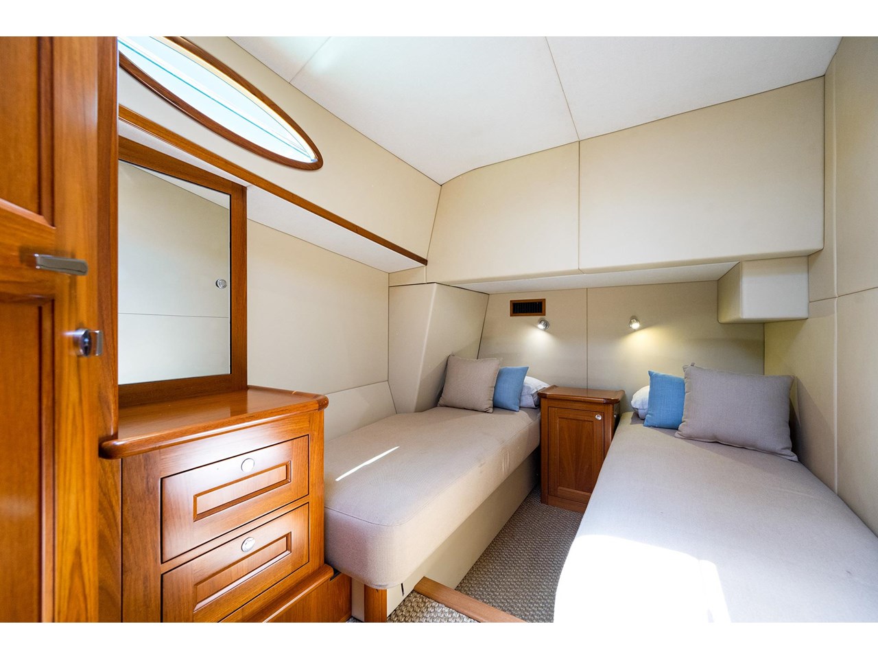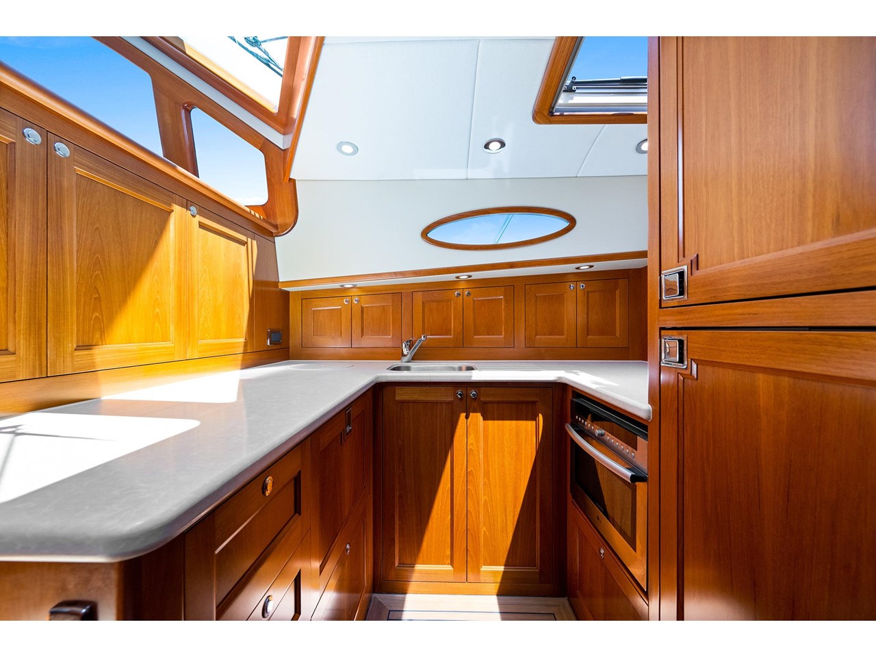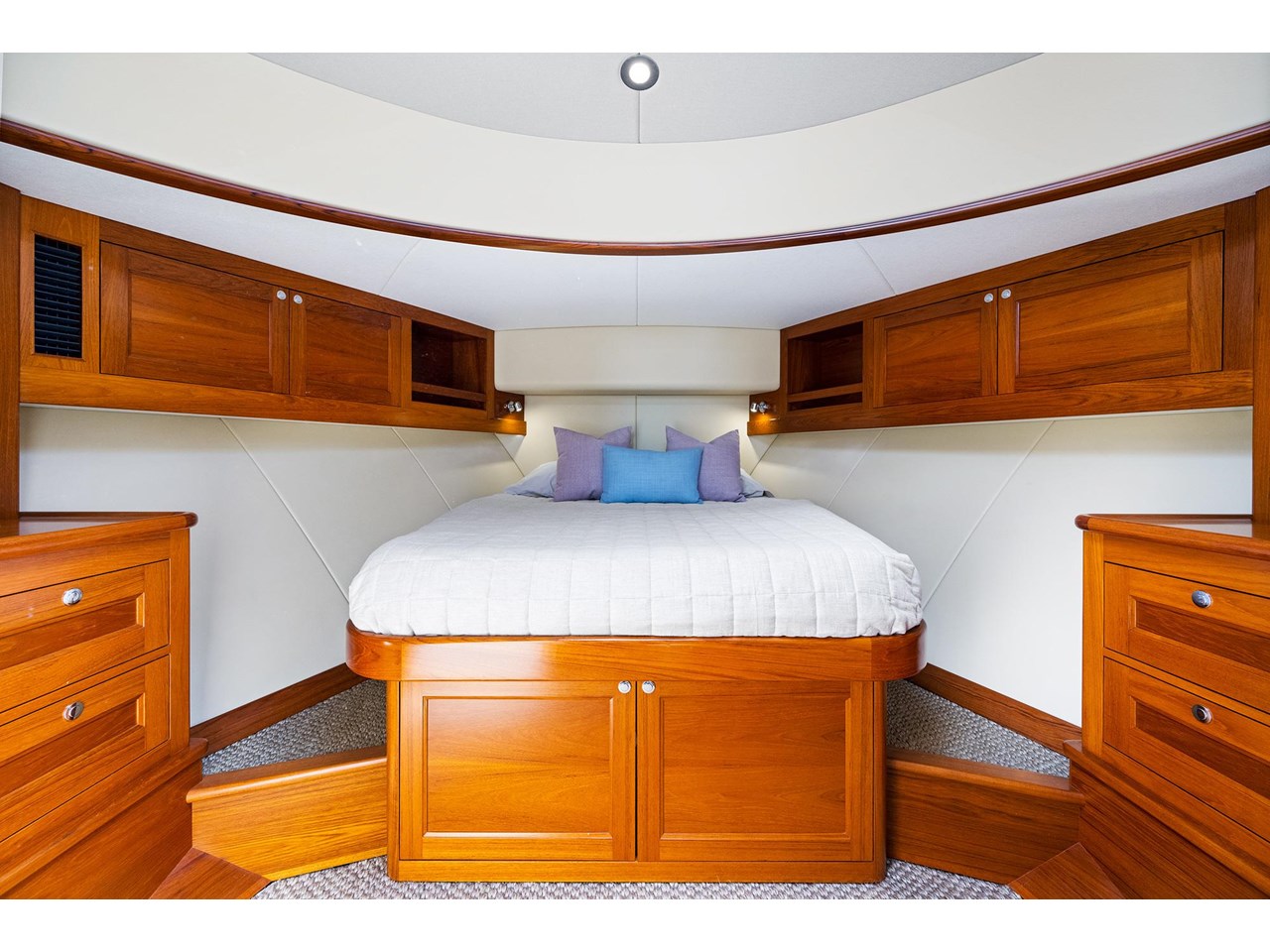 Alfrescos luxurious cockpit leads to a popular galley-down configuration with a spacious saloon area that provides everything you need to both entertain friends and family and relax with ease. The master stateroom is warm and airy with a generous ensuite, plenty of natural light and dynamic views through the iconic Palm Beach portholes.