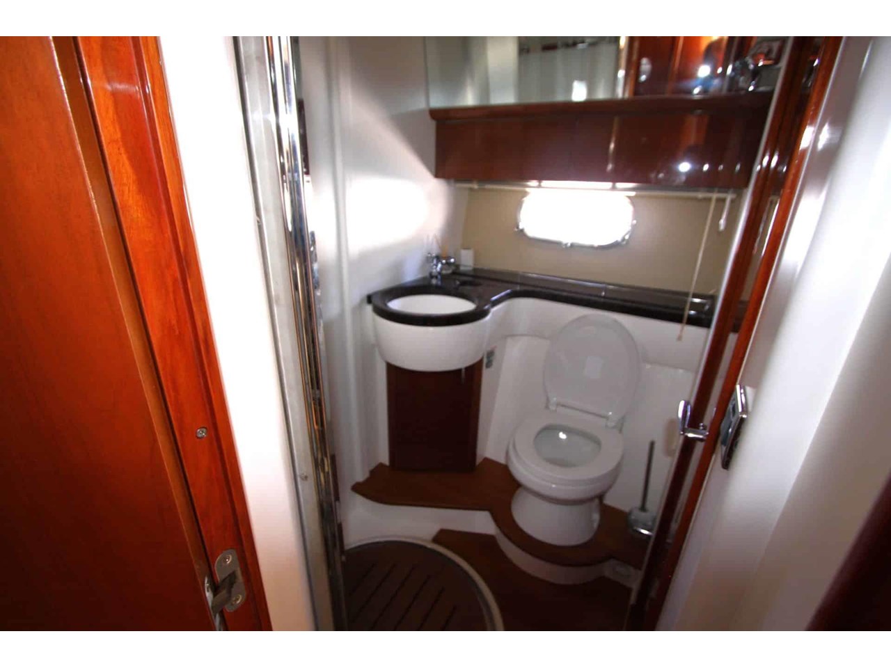 Inside, the spacious saloon offers full headroom and elegant finishes. Accommodation includes two cabins: a walkaround forward berth and two single berths. There are two electric toilets, two showers, and an additional cockpit shower for ultimate comfort.