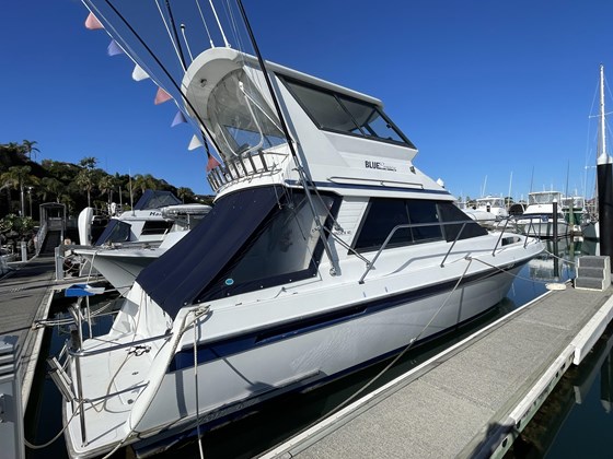 Best equipped Rayglass 4000 on the market. Completely repowered in January 2022 with New Twin Mercury Diesel V8 TDI 370hp, including new Bravo III XR duo-prop stern legs, Digital throttles and JPS joystick docking. Also two new Simrad 12 MDF and Xsonic Airmar transducer. Includes Radar, Satellite TV, Bow Thruster, Shore Power, 2500w inverter, Diesel Heating. New Fridge & Freezer under cockpit floor.
