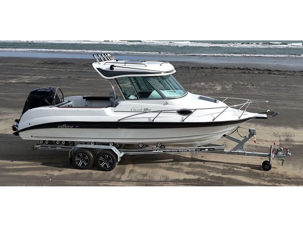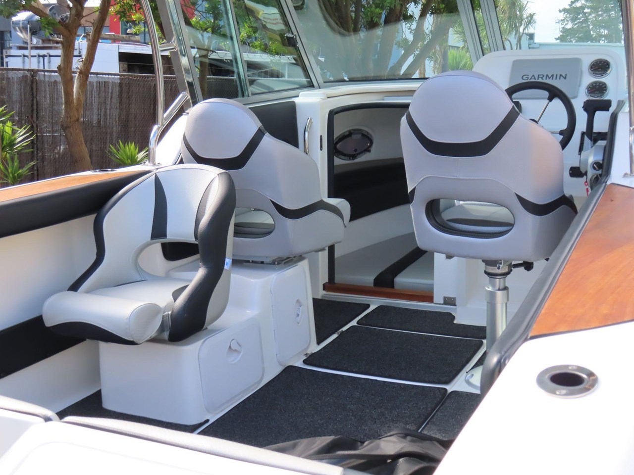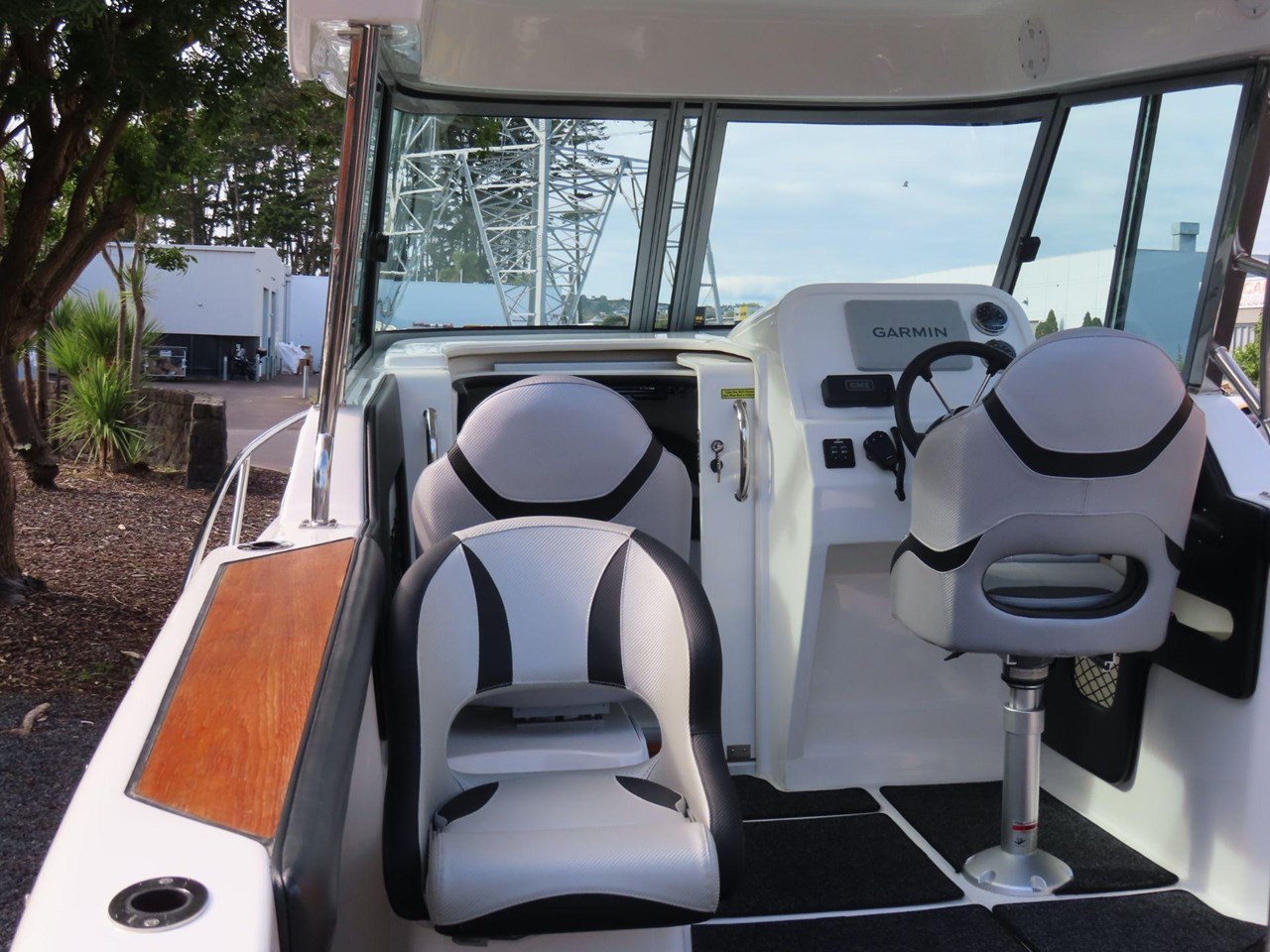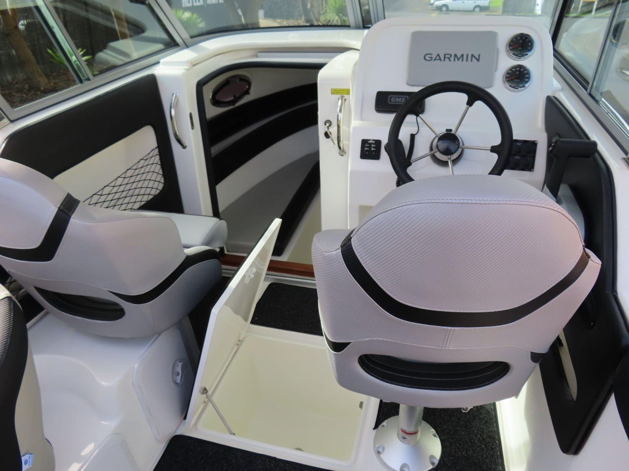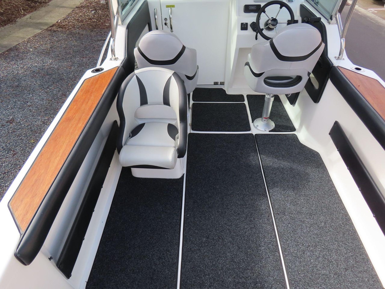 Polyurethane Underfloor Foam for Extra Bouyancy.... Five Year Hull Warranty.... Hard Top With Sliding Windows.... Safety Glass Windsreen.... Superior Cockpit Floor Area.... Walk Through Transom with Door.... Large Under Floor Storage Locker.... Bilge Pump-Electric, Battery Box and Isolation Switch.... Navigation Lights.... Bait Bin.... S/S Deck Fitting With Upgraded Drop Nose Fairlead Roller .... Full Width Moulded Bow Sprit.... Easy Access Foredeck Cabin Hatch.... Integrally Bonded Internal Liner with Non Slip Floor.... Seperated Deck Accessed Anchor Locker.... Strong Solid Hand Laid Wover Roving Fibreglass Hull with Stringers.... Large Cockpit Side Pockets.... Twin Softrider Pedestal With Upholsetered Bolster Seat on Slider.... S/S Rod Holders (Pair).... Rotary Steering with Wheel.... Trailer Upgraded to a Tandem Axle, S/S Brakes, Extra Rollers & Alloy Wheels GT.