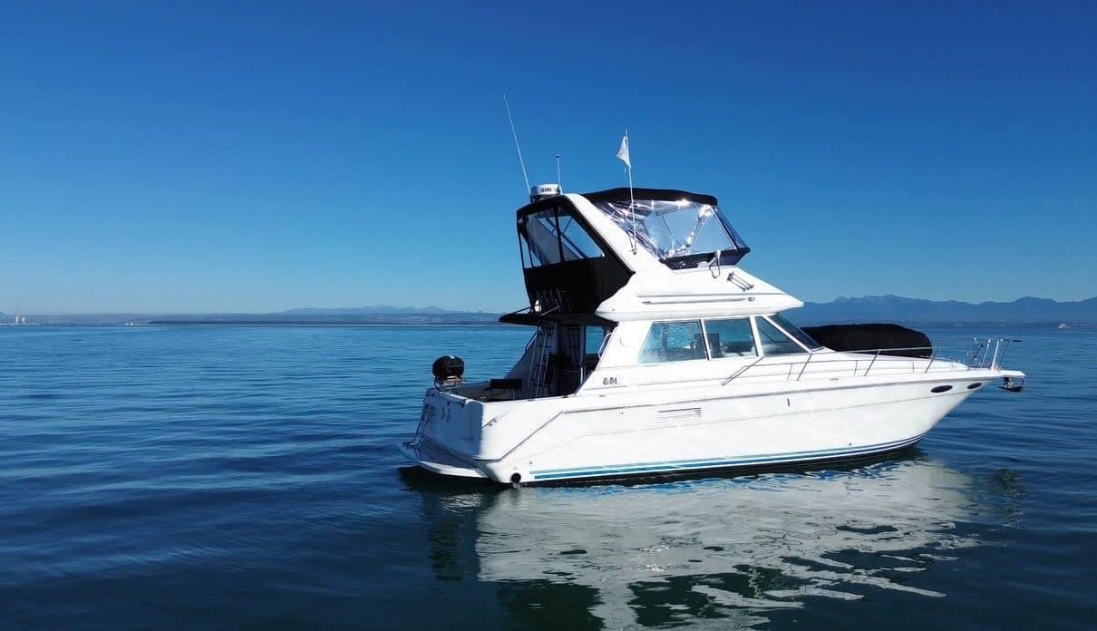 Step aboard "Ten-Ten", this well maintained 1992 Sea Ray 370 Sedan Bridge. With its spacious flybridge, and generous interior layout, this vessel offers the perfect blend of performance, comfort, and style. Whether you're chasing weekend fishing adventures, or extended coastal getaways, this Sea Ray delivers in every category. Its timeless design and proven build quality make it a standout in its class. This Sea Ray 370 presents itself well, the saloon is large with good seating to the port side and galley down to starboard which leads into the two double cabins and good size head and shower. The good size cockpit has a large sliding door from the saloon to give easy access in and out. The walk-through transom and large swim platform help increase the useable area.