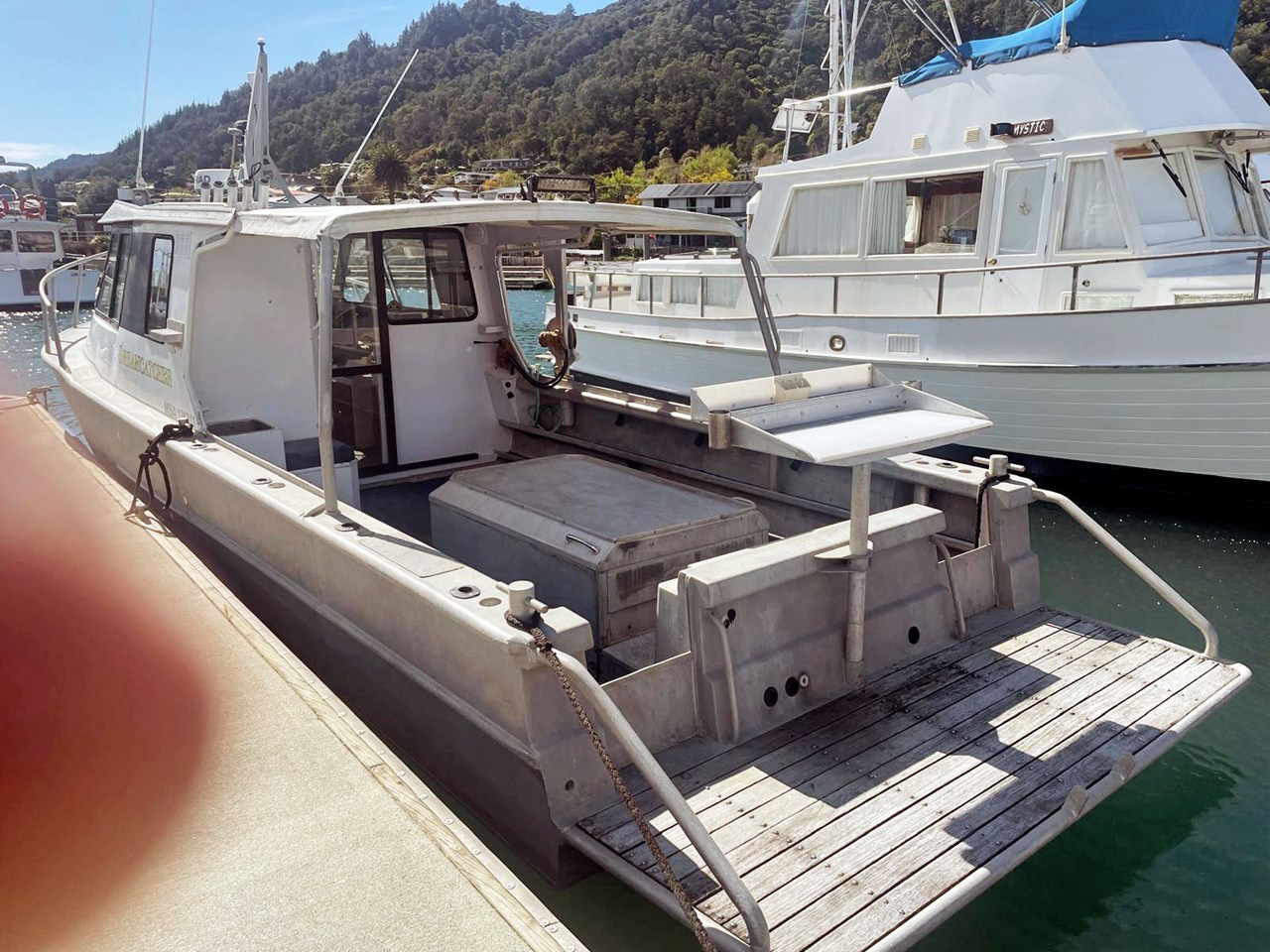 Ex commercial vessel with accommodation for 4-5 people small galley, head, and shower on aft deck.Good deck space with large boarding platform and filleting board, electric reel jack points, and hydraulic hauler.