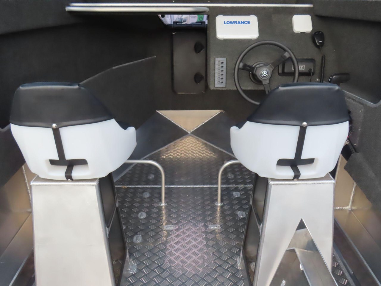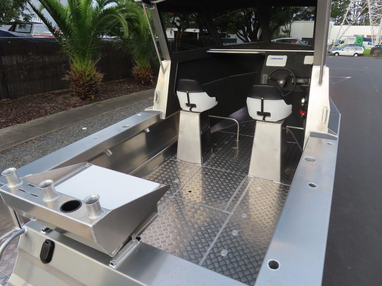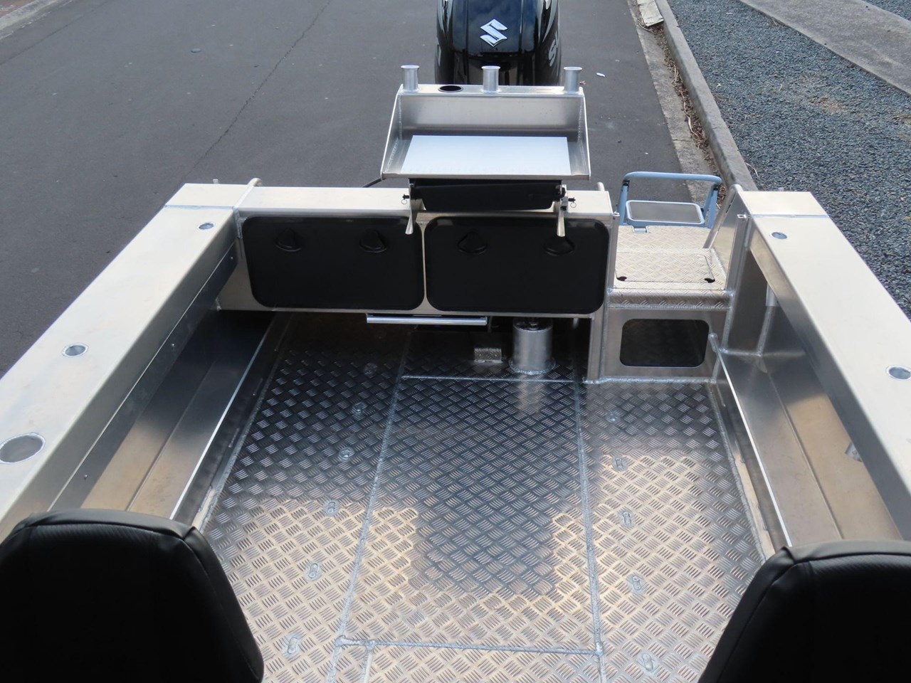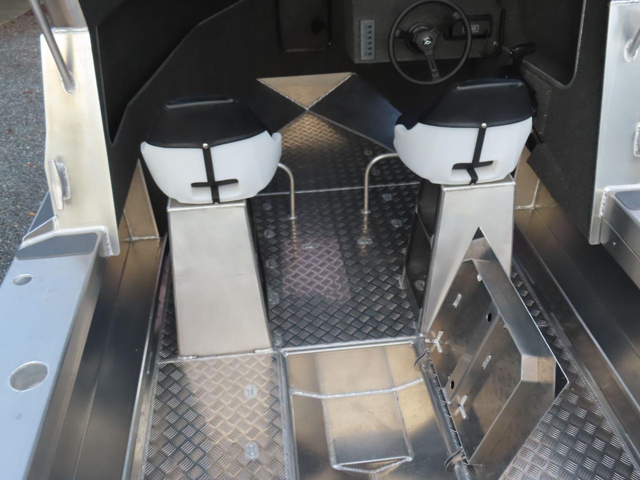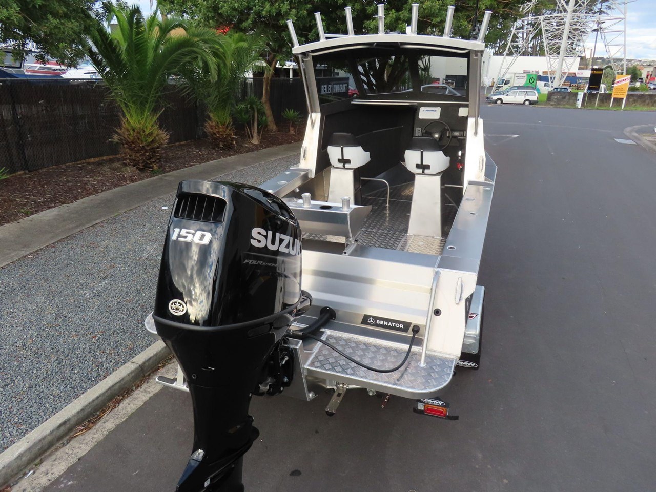 5 year warranty on hull.... Marine grade alloy.... Anchor storage.... Sealed Perspex hatch.... BEP 6-way switch panel.... Bilge pump.... Bollard & cleats.... Twin duckboard.... Fair lead & roller.... Fully welded deck.... Fender rail.... Grab rails on transom.... Ladder with grab rails.... Pedestal swivel seats.... Portofino style transom.... Pontoon Rod holders x 4.... Upholstered pedestal swivel seats.... Rocket launcher rod racks.... Rotary steering.... Upholstered seats.... Twin duckboard.... Transducer mount plate.... SAFETY.... Reserve Buoyancy.... 5 x Pressue tested and sealed Buoyancy chambers.... Senator fuel breather system.... LED Navigation Lights.... Tinted safety glass.... Grab rails on rear of cabin.... Non skid walk around....