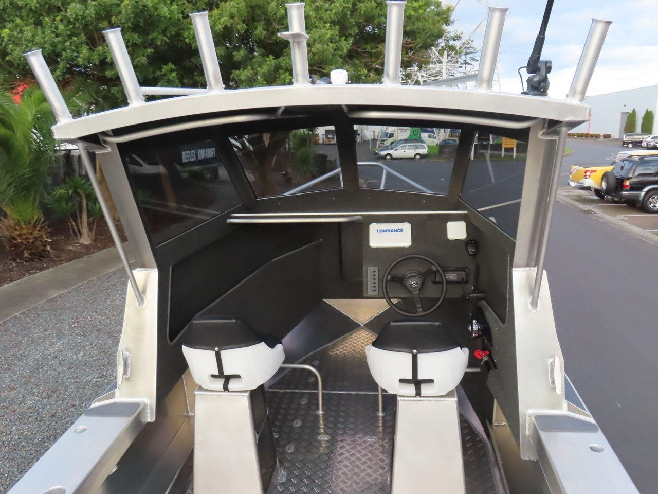 Hand Rails "L" Shaped Under Hard Top Roof.... Hinged Fishbin Lid.... Live Bait Tank/Window/Plumbing (under walkthru).... Walk-Through Transom.... Vinyl Wrap to Hard Top Brow, Cabin Sides, and Hull.... UPGRADE TO SUZUKI DF150ATX WITH MFG.... Simrad/Lowrance 7" / Xdcuder / Charts / Antenna / Install .... VHF Radio/Aerial/Fitting.