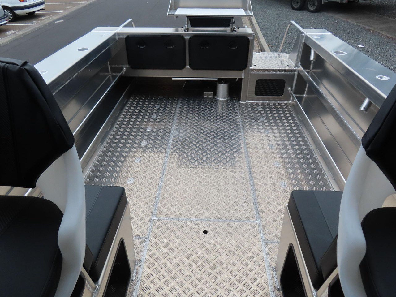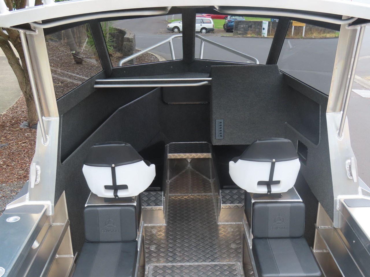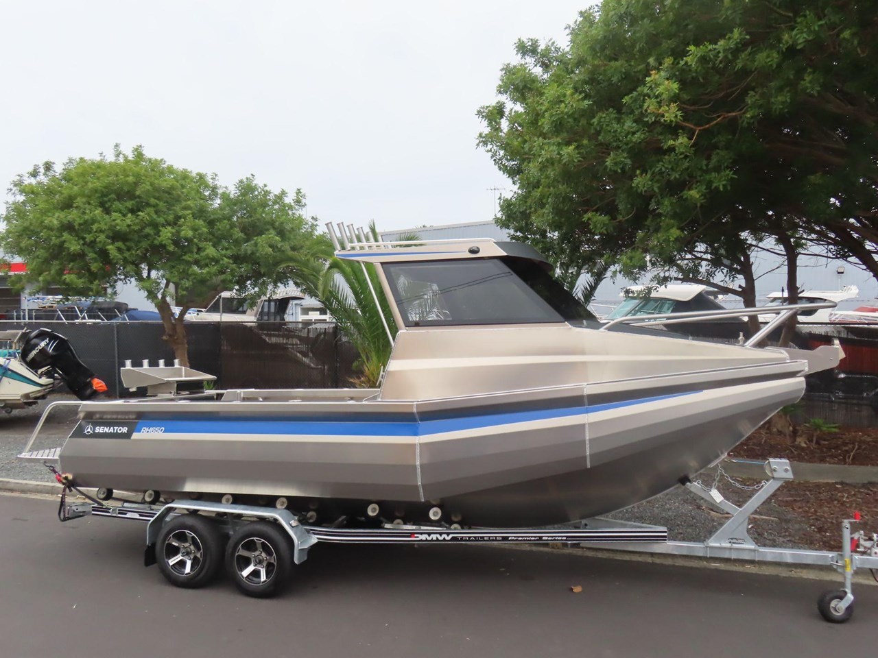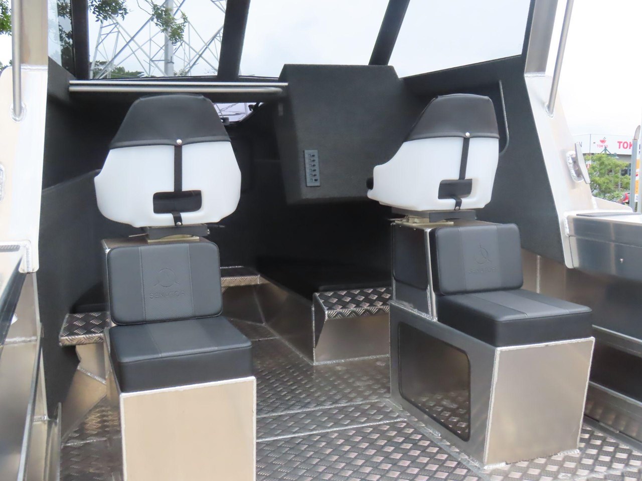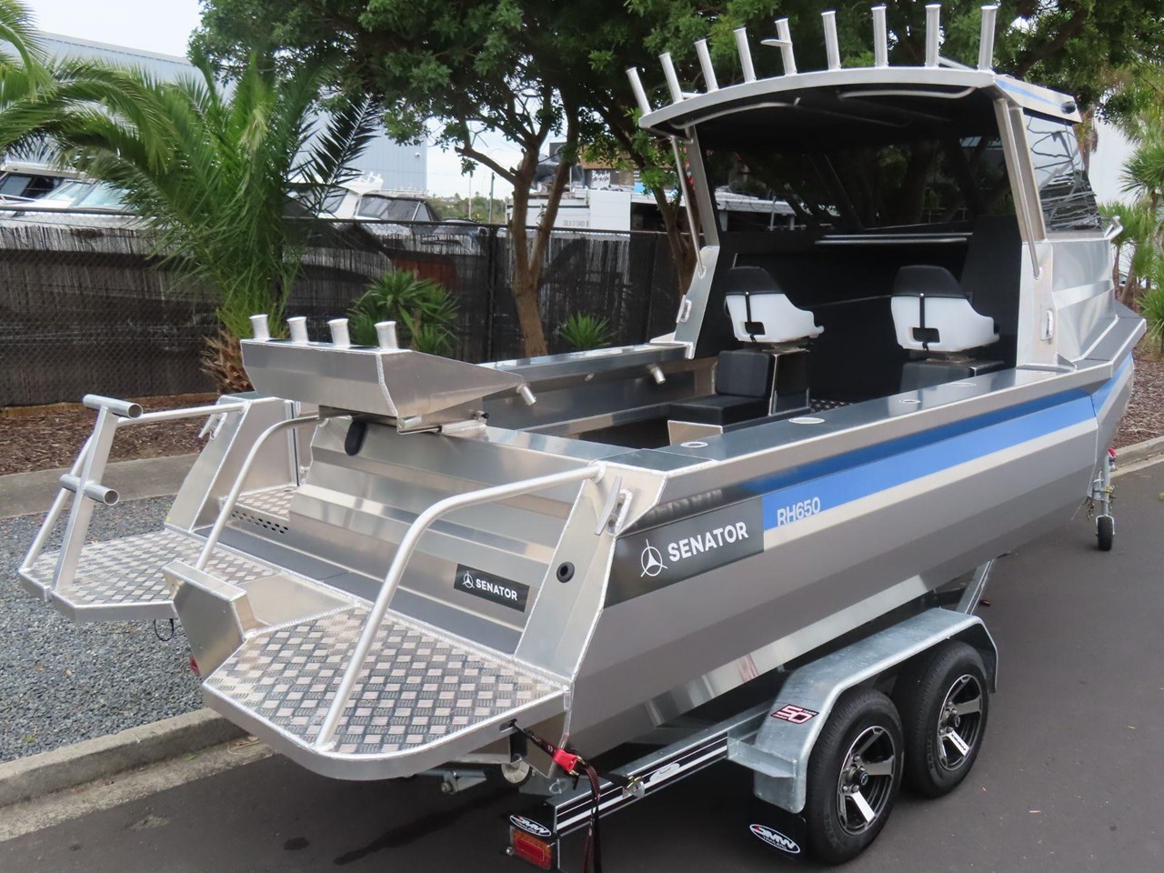 5 year warranty on hull.... Marine grade alloy plate.... Portofino style transom.... Anchor locker.... Water tight cabin hatch.... Rod holders x4.... King & queen seats.... Heavy duty, non feedback steering.... Bilge pump.... Bollards and cleats.... Fuel tank under floor.... Twin duckboards.... Ladder with grab handles.... Enclosed rear transom.... Second shelf in pontoons.... Fish bin under floor.... Forward cabin squabs.... Rocket launcher rod racks.... Fair lead & roller.... SAFTEY.... Reserve buoyancy.... Pressure tested and sealed buoyancy chambers.... Senator fuel breather system.... LED navigation lights.... Tinted marine safety glass.... Grab rails on rear of cabin.... Non skid walk around.... Registration and WOF.... Prop Flag....