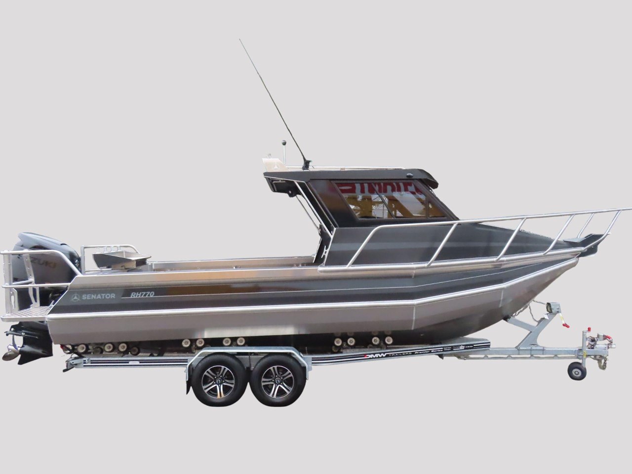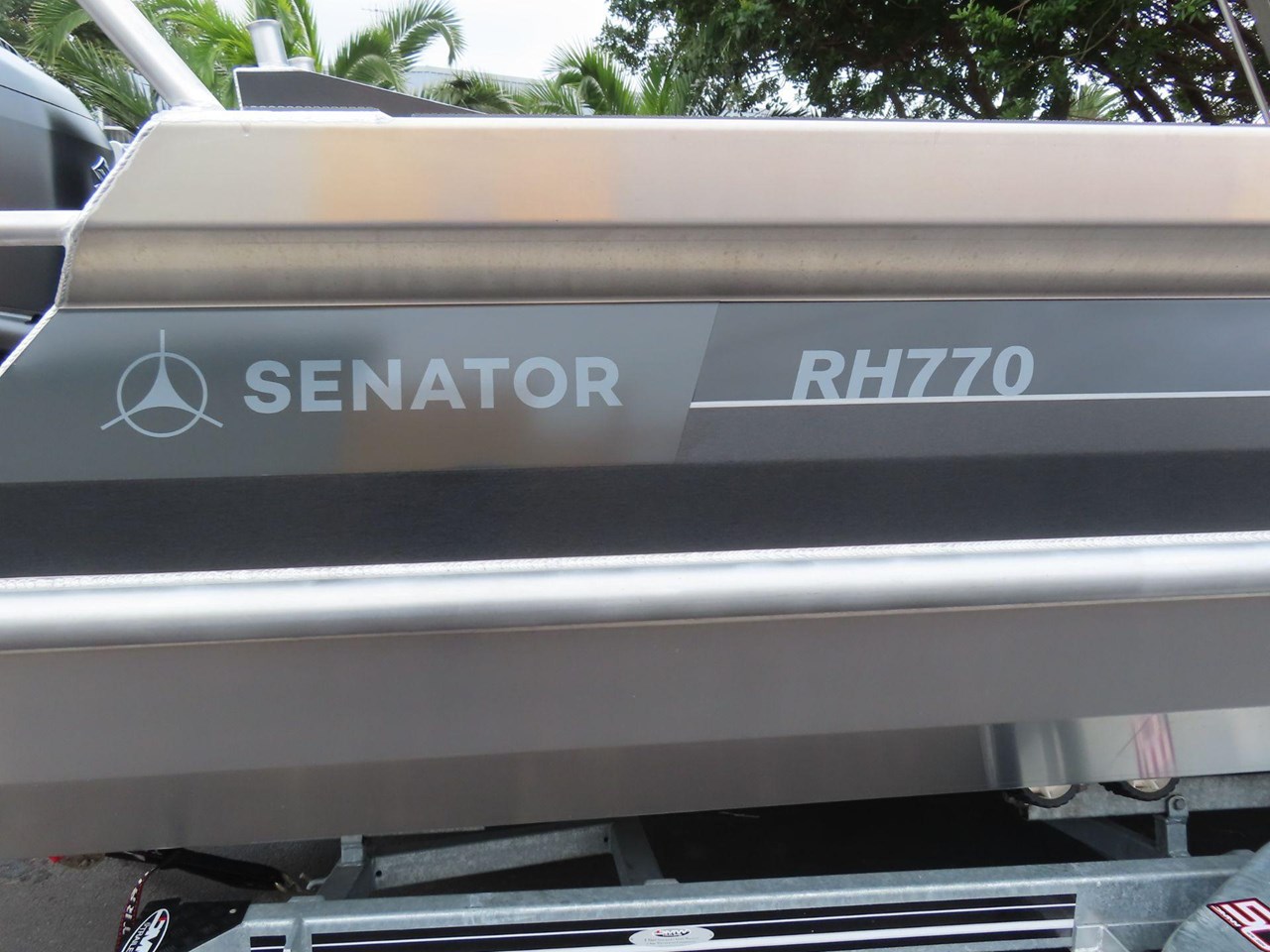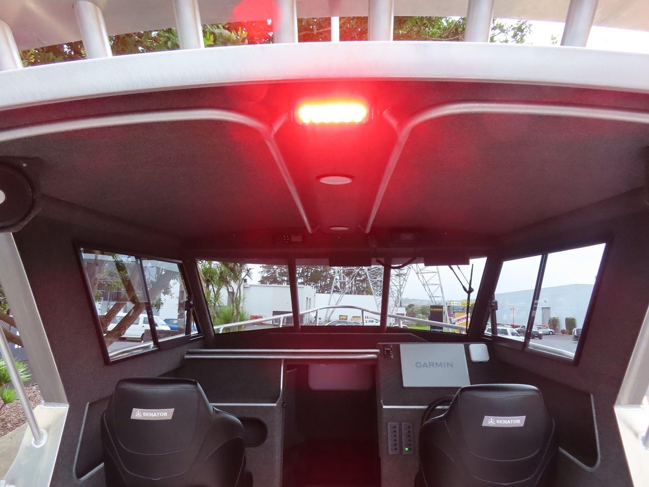 5 year warranty on hull.... Marine grade alloy.... Portofino style transom.... 10 rod rocket launcher.... Anchor locker.... Water tight cabin hatch.... 6x Pontoon rod holders.... Variety of grab rails.... Tinted safety glass windows.... Twin duckboards.... Ladder with grab handles.... Second shelf in pontoons.... Enclosed rear transom.... Bow guide rails.... King and queen seats.... Fully upholstered cabin.... Non-skid walk around.... LED navigation lights.... Bilge pump.... Bollard & cleats.... Fuel tank under floor.... Fish bins under floor x 2.... BEP 6 way panel/loom and fuses.... Transducer mount plate.... SAFETY.... Reserve buoyancy.... Pressure tested and sealed buoyancy chambers.... Senator fuel breather system.... LED navigation lights.... Tinted marine safety glass.... Grab rails on rear of cabin.... Non skid walk around.