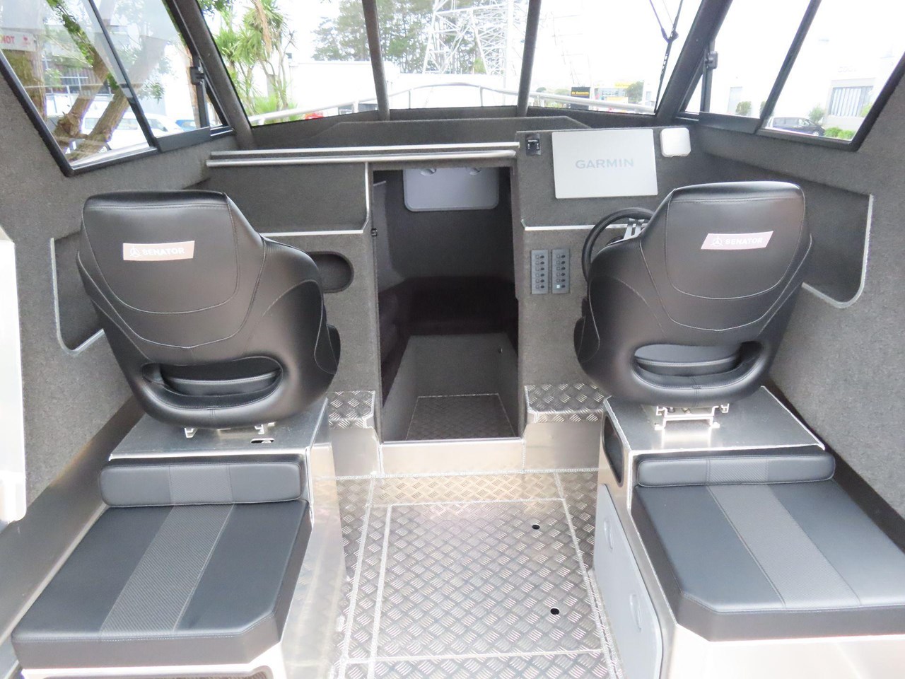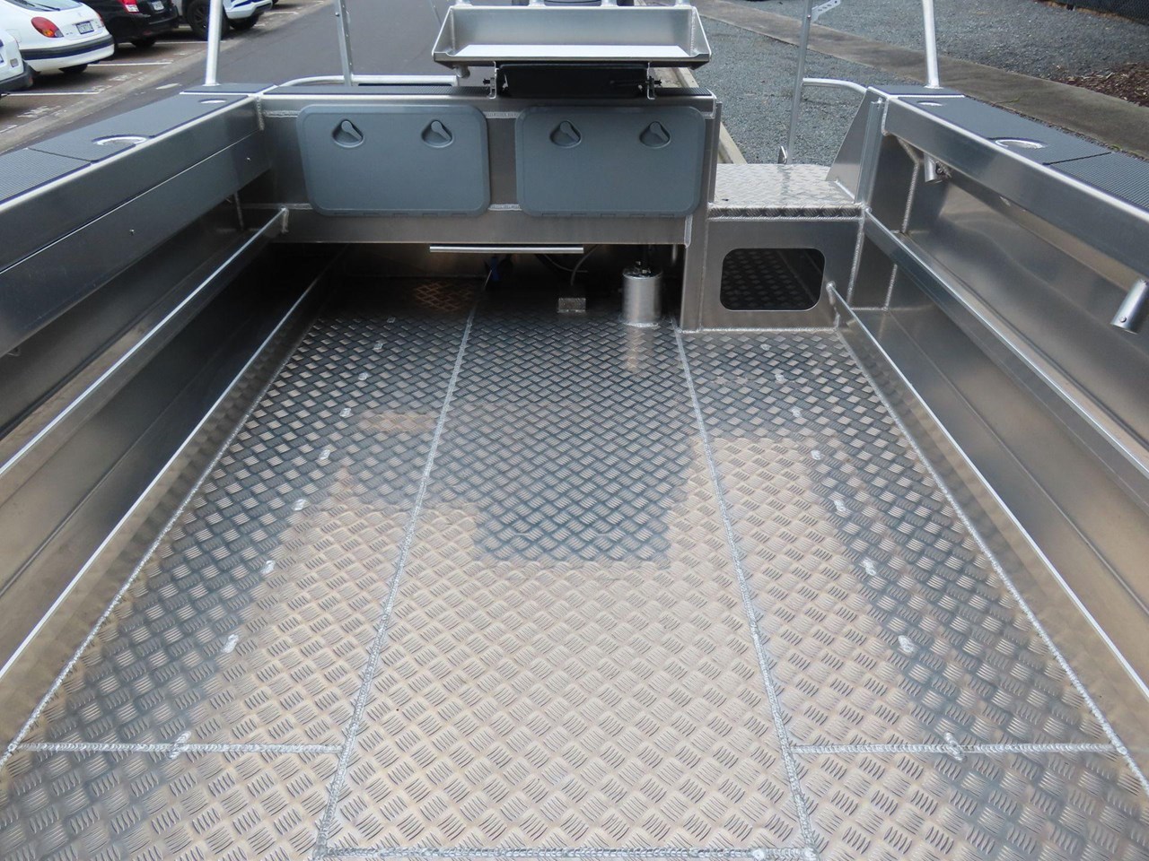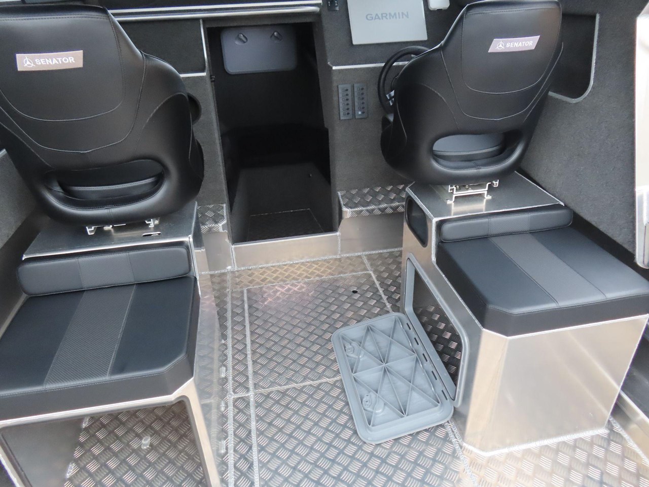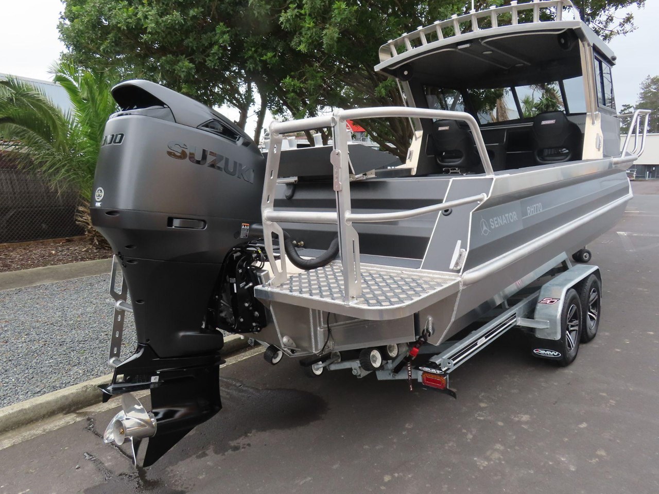 5 year warranty on hull.... Marine grade alloy.... Portofino style transom.... 10 rod rocket launcher.... Anchor locker.... Water tight cabin hatch.... 6x Pontoon rod holders.... Variety of grab rails.... Tinted safety glass windows.... Twin duckboards.... Ladder with grab handles.... Second shelf in pontoons.... Enclosed rear transom.... Bow guide rails.... King and queen seats.... Fully upholstered cabin.... Non-skid walk around.... LED navigation lights.... Bilge pump.... Bollard & cleats.... Fuel tank under floor.... Fish bins under floor x 2.... BEP 6 way panel/loom and fuses.... Transducer mount plate.... SAFETY.... Reserve buoyancy.... Pressure tested and sealed buoyancy chambers.... Senator fuel breather system.... LED navigation lights.... Tinted marine safety glass.... Grab rails on rear of cabin.... Non skid walk around.