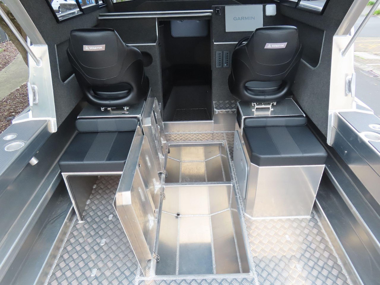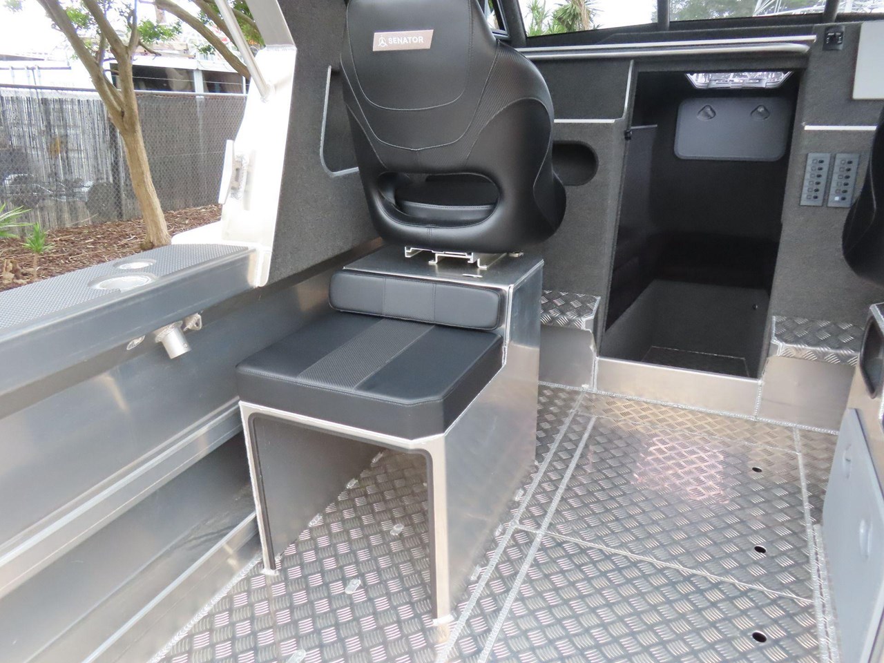1020 Style Mounted on Side of Gunnel.... Bolster Seat Upgrade including Slider (pair).... Bump Rail.... Cabin Door Forward Bulkhead.... Cabin Infill Squab.... Cabin Infill Squab 2 Piece (upgrade) Recommended with Toilet.... Electric Toilet in Front Cabin.... Extend Duckboards by 200mm.... External GPS Antenna Mount.... Fuel Tank Upgrade to 460L.... Gear Storage Hammock to Front Cabin.... Hand Rails "L" Shaped Under Hard Top Roof.... Hinging Fish Bin Lid .... Lengthen Cabin Wheelhouse 300mm (Extends for a extra protection).... Live Bait Tank/Window/Plumbing (under walkthru).... Lightbar mount wide on hardtop.... Min Kota Mount Over Fairlead.... Overhead Console for VHF / Stereo.... Provision for Windscreen Wiper - Per Side.... Radar Wing Through Rocket Launcher.... Rod holders extra (each).... Roof Overhang Extension per 100mm.... Plain Plate Floor.... Safety Lugs for Gamefishing Reels.... Sliding Side Window .... Speaker Boxes (outside sliding doors).... Stiffener Plates for Outriggers.... Switch Panel Additional (each).... Transom Pipe Rails with CNC Ladder.... Typhoon Style Bait Board - Large - 2 Locking Pins.... Walk-Through Transom.... Cloth Upholstery Upgrade to Front Cabin.... Deck Grip to Gunnel Tops .... Vinyl Wrap to Hard Top Brow, Cabin Top & Bump rail up.... Auto Capstan - Maxwell RC8-8 (Includes Senator mods Anchor, Rope & Chain).... Cockpit Floodlight Red/White.... Cabin Light Set (2) - Red/White.... Forward Cabin Reading Light.... Twin Battery Upgrade/Parallel Switching/VSR.... Windscreen Wiper - Per Side.... UPGRADE TO SUZUKI DF300APX WITH MFG (DIGITAL).... STEALTH UPGRADE.... Garmin GPSMAP8412 with GT51 / Charts / Antenna/ Install.... Fusion MS- RA60 / 2x 6.5" Speakers / Aerial / Install.... VHF Radio/Aerial/Fitting.