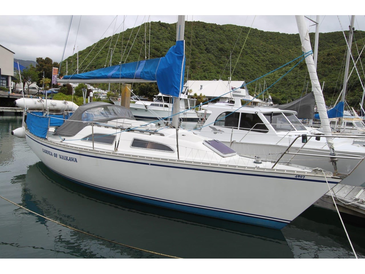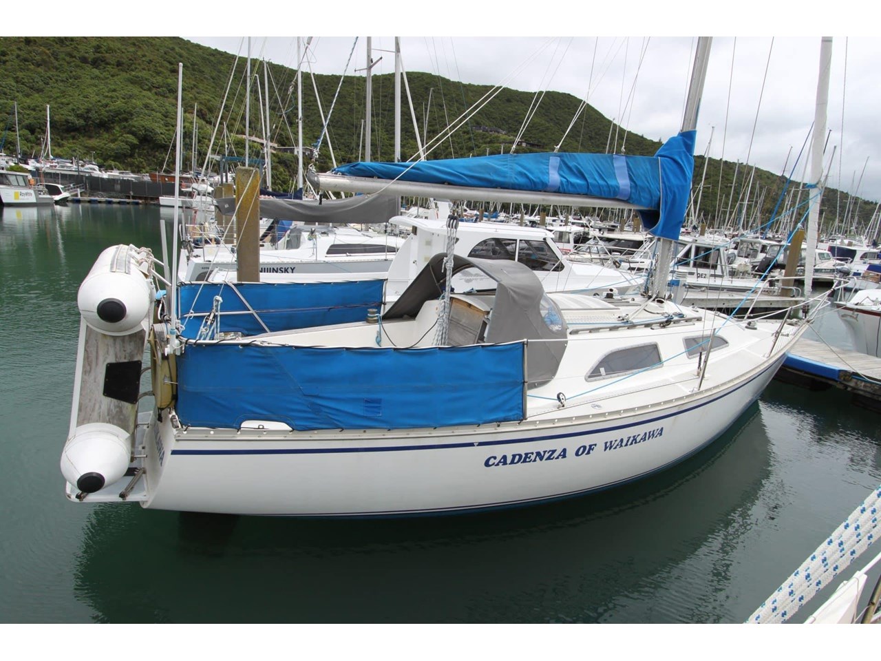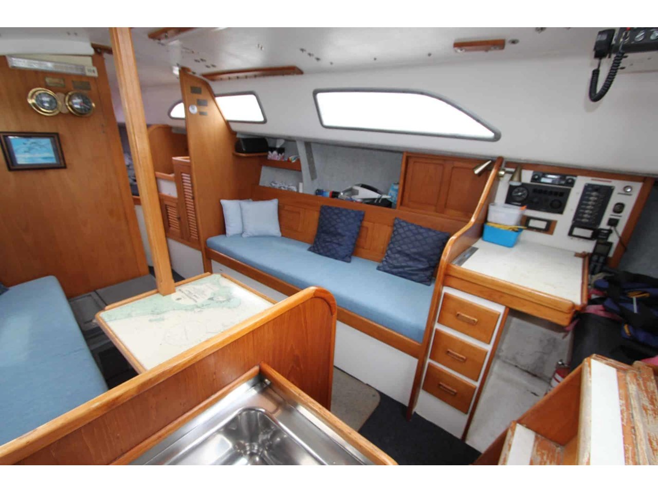 1983 GRP hull with classic wood interior trim. Powered by a 15hp Yanmar diesel engine with a 3-blade propeller.