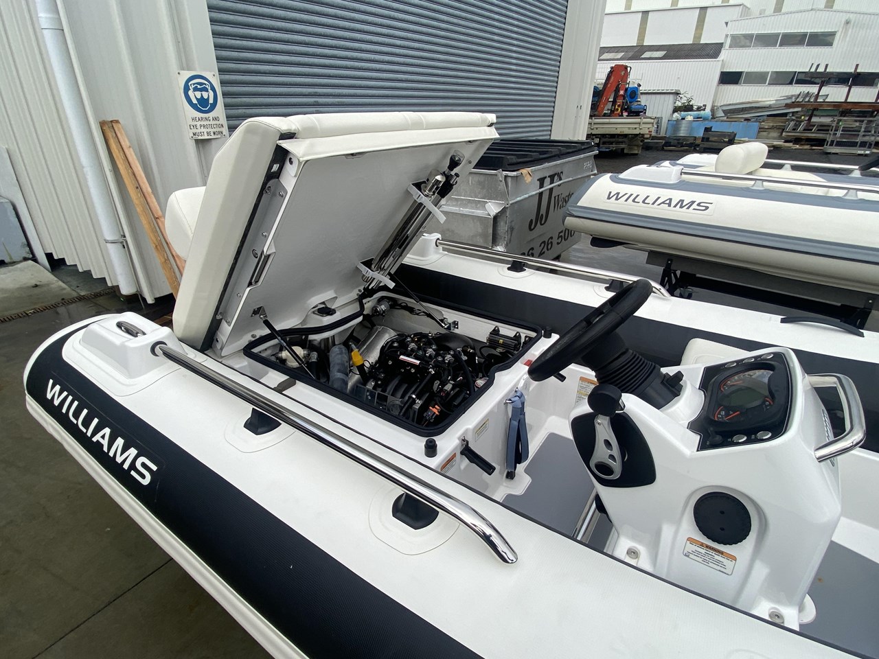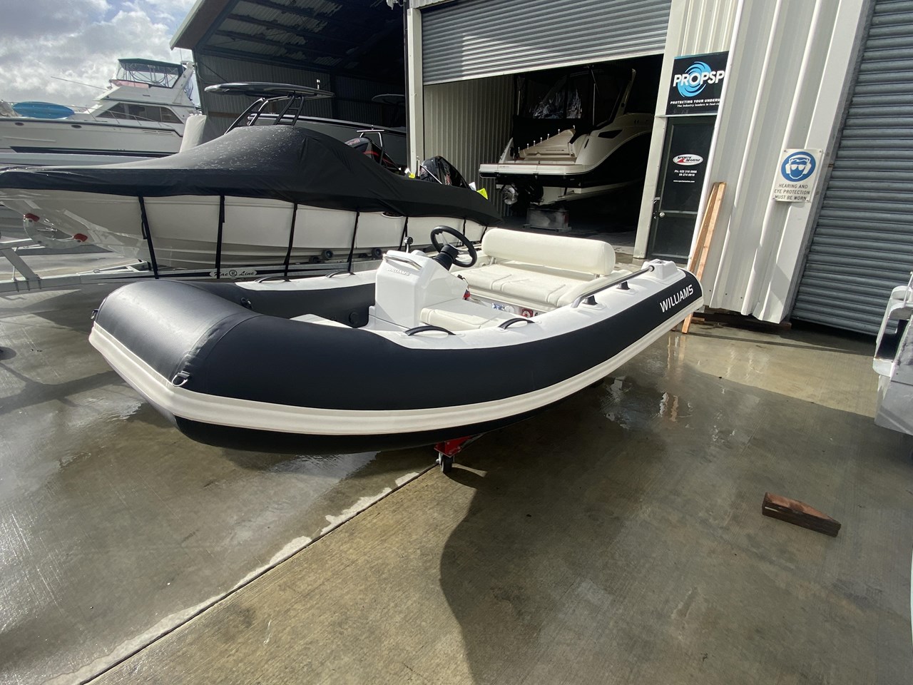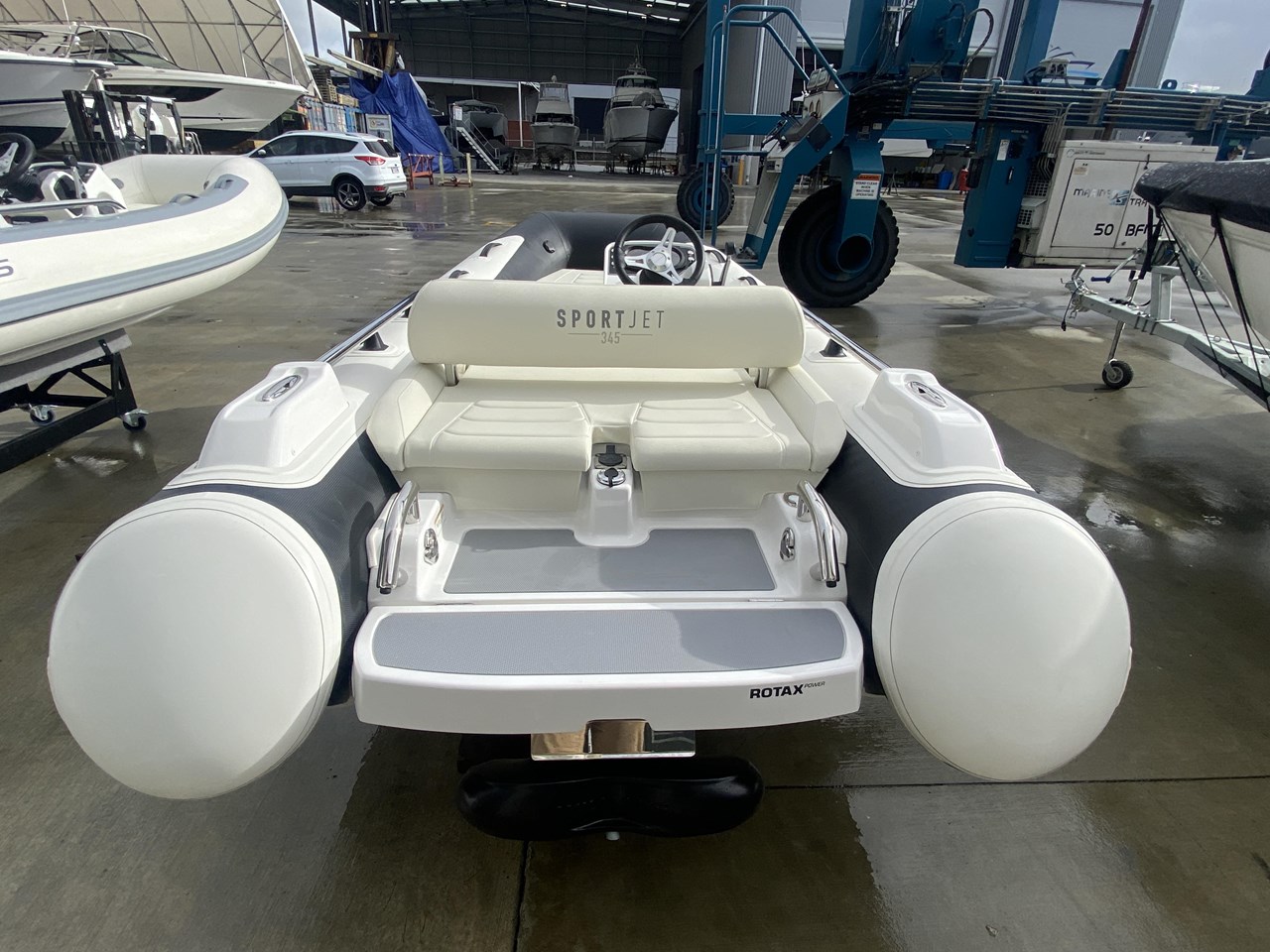 2023 Williams Jet Tenders Sport Jet 345 Powered by a BRP Rotax Ace 903 - 90hp Get ready to conquer the waves with the impressive performance of the Williams 345 Sport Jet. Equipped with a high-performance jet propulsion system, this tender delivers remarkable speed, agility, and precision handling. Experience a thrilling ride as you effortlessly glide across the water, powered by a dynamic engine that ensures rapid acceleration and top-notch maneuverability. Williams Jet Tender designed the SportJet 345 to fit on 16m+ yachts, so owners of mid-sized yachts can now experience the ultimate sports tender. Its BRP Rotax engine and expertly designed sports hull gives you and 4 passengers power and precision in one small but mighty package. Factory Options Included: Carbon Black Tubing Upgraded Silvertex Upholstery - Silvertex Icecream Intelligent Neautral Reverse Bucket Find out more about Williams Jet Tenders at www.williamsjettenders.com Only available at Sports Marine - New Zealand's sole authorised Williams Jet Tender dealer. Sports Marine have over 100 boats for sale in Christchurch, Auckland & Sydney. We've been selling quality new & used boats for 40-years. With over 8,000 boats sold, you can count on us for great deals and quality after-sales service & support. This boat is on display and ready for inspection now at Sports Marine Auckland. Piped Deck Drains Carbon Black Tubes Intelligent Neutral Reverse Bucket Sports Boat Hull Shape Under-Seat Storage Single Lever Throttle/Shift Control Bathing Ladder Navigation Lights Bow U Bolt Two Rear Tie-Down Points Tube Repair Kit Fitted Fuel Tank with fuel gauge Fabric Grab Handles Four Lifting Pad-Eyes 12V DC Socket Forward Cleat Adjustable Steering Wheel Automatic Bilge Pump