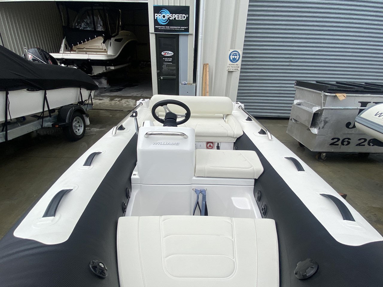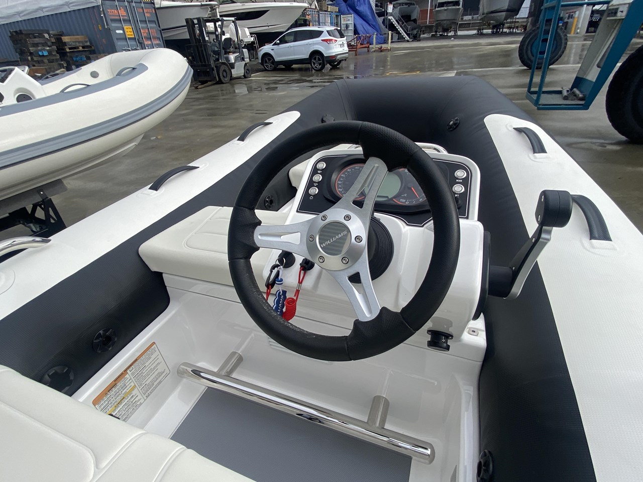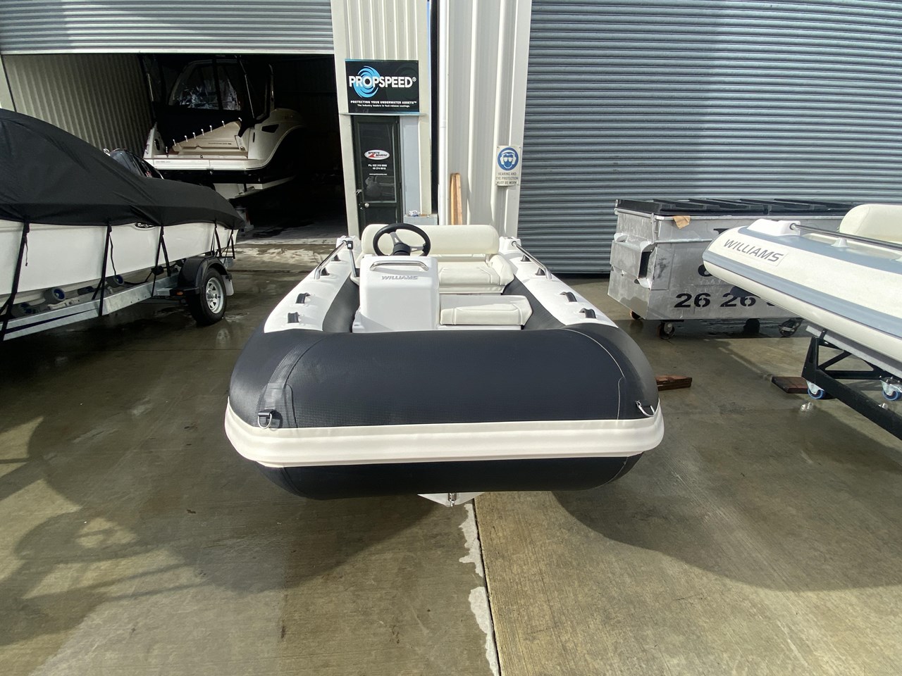 2023 Williams Jet Tenders Sport Jet 345 Powered by a BRP Rotax Ace 903 - 90hp Get ready to conquer the waves with the impressive performance of the Williams 345 Sport Jet. Equipped with a high-performance jet propulsion system, this tender delivers remarkable speed, agility, and precision handling. Experience a thrilling ride as you effortlessly glide across the water, powered by a dynamic engine that ensures rapid acceleration and top-notch maneuverability. Williams Jet Tender designed the SportJet 345 to fit on 16m+ yachts, so owners of mid-sized yachts can now experience the ultimate sports tender. Its BRP Rotax engine and expertly designed sports hull gives you and 4 passengers power and precision in one small but mighty package. Factory Options Included: Carbon Black Tubing Upgraded Silvertex Upholstery - Silvertex Icecream Intelligent Neautral Reverse Bucket Find out more about Williams Jet Tenders at www.williamsjettenders.com Only available at Sports Marine - New Zealand's sole authorised Williams Jet Tender dealer. Sports Marine have over 100 boats for sale in Christchurch, Auckland & Sydney. We've been selling quality new & used boats for 40-years. With over 8,000 boats sold, you can count on us for great deals and quality after-sales service & support. This boat is on display and ready for inspection now at Sports Marine Auckland. Piped Deck Drains Carbon Black Tubes Intelligent Neutral Reverse Bucket Sports Boat Hull Shape Under-Seat Storage Single Lever Throttle/Shift Control Bathing Ladder Navigation Lights Bow U Bolt Two Rear Tie-Down Points Tube Repair Kit Fitted Fuel Tank with fuel gauge Fabric Grab Handles Four Lifting Pad-Eyes 12V DC Socket Forward Cleat Adjustable Steering Wheel Automatic Bilge Pump