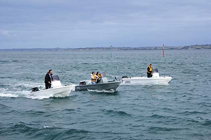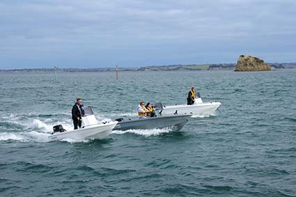 We again had the centre console layout to have a play with, although this model also comes in a cuddy cabin “offshore runabout” version. This boat was moulded in a pleasant white colour with a slight marble fleck, and this time came with the 50hp Tohatsu motor.